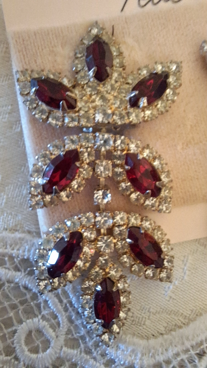 Vintage red and clear rhinestone Clip-On Earrings