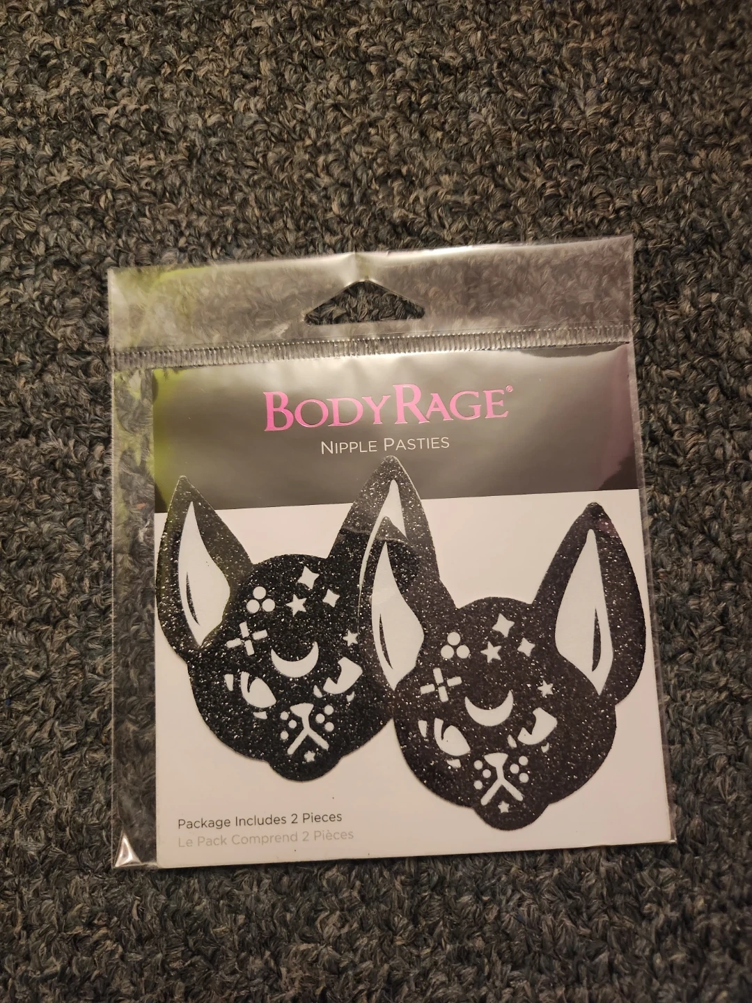 BodyRage Nipple Pasties - Black Glitter Cat Design