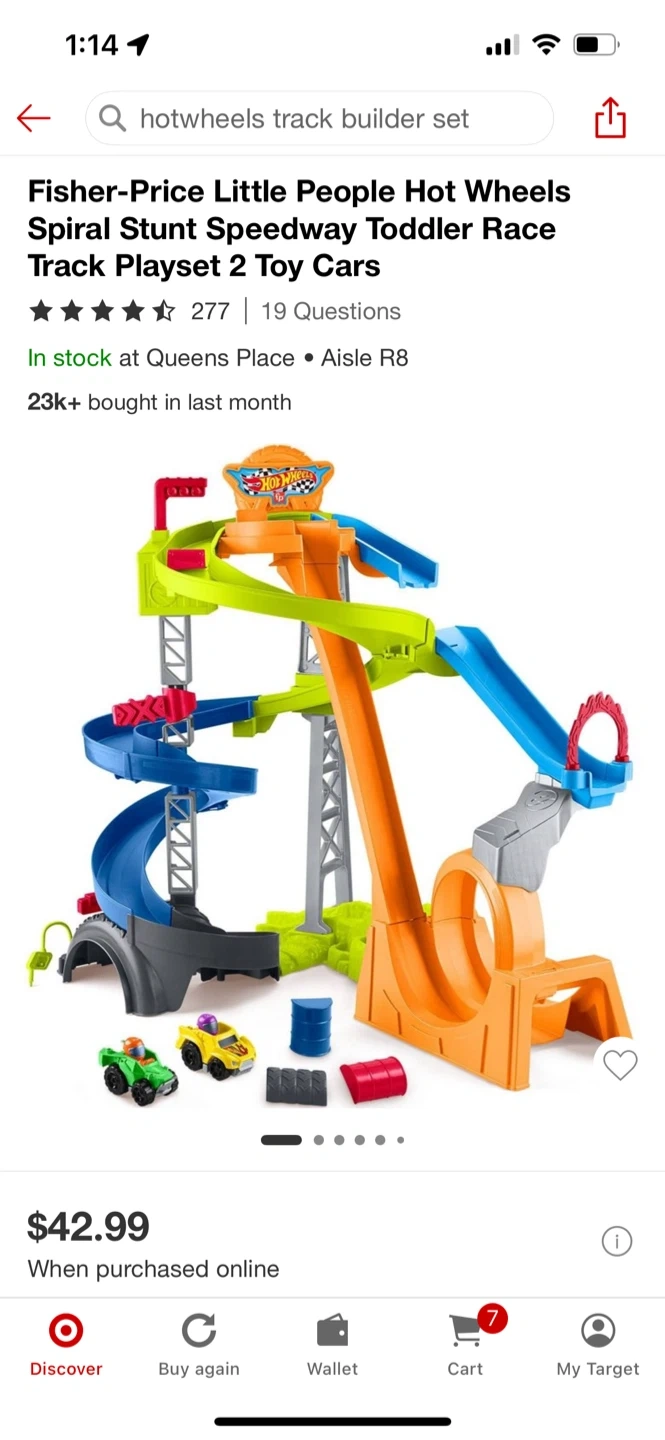 Selling a Fisher-Price Little People Hot Wheels Spiral Stunt Speedway Toddler Race Track Playset! It comes with 2 toy cars. Originally priced at $42.99