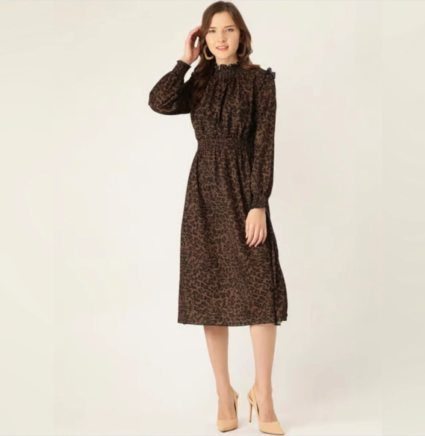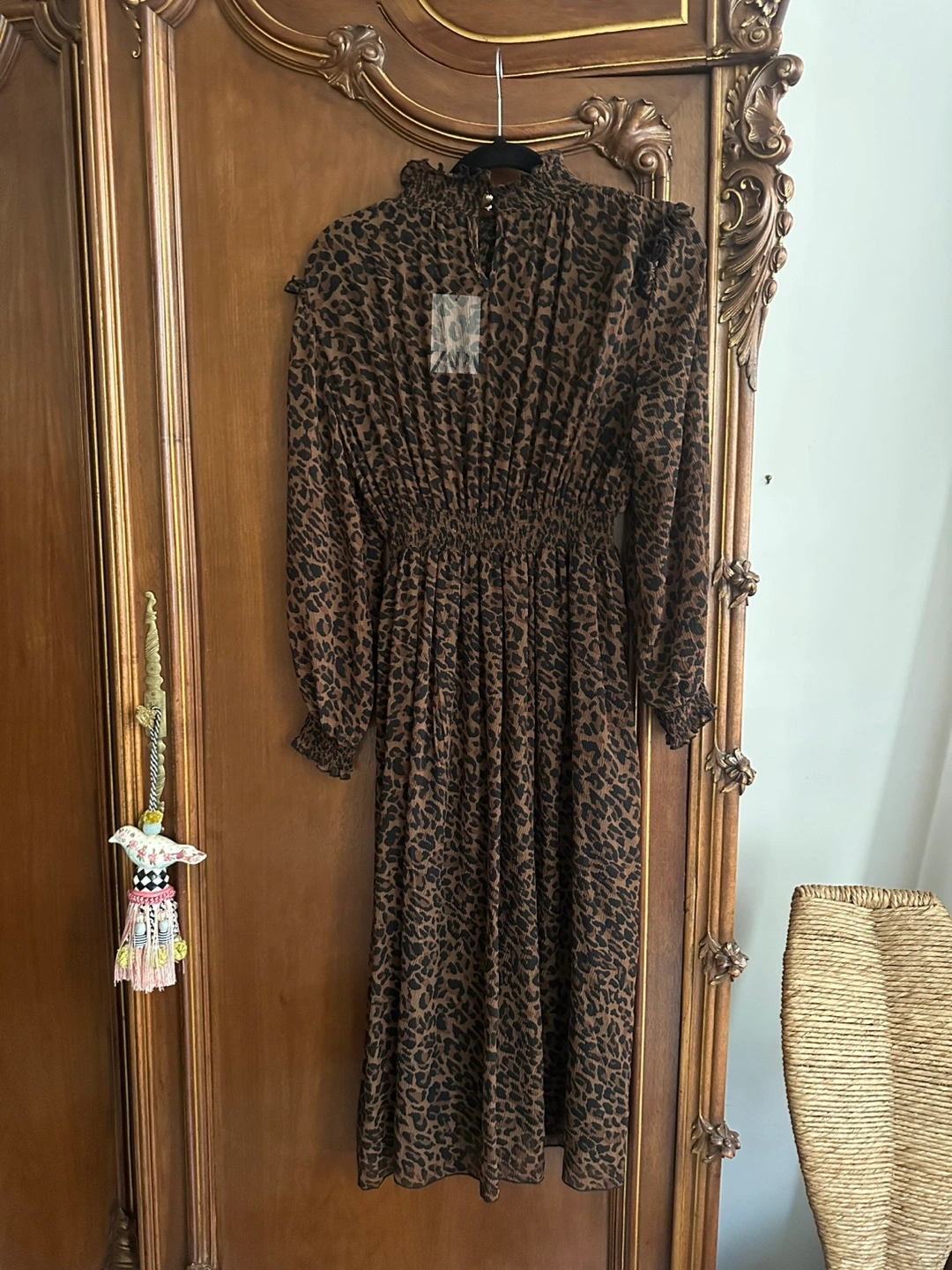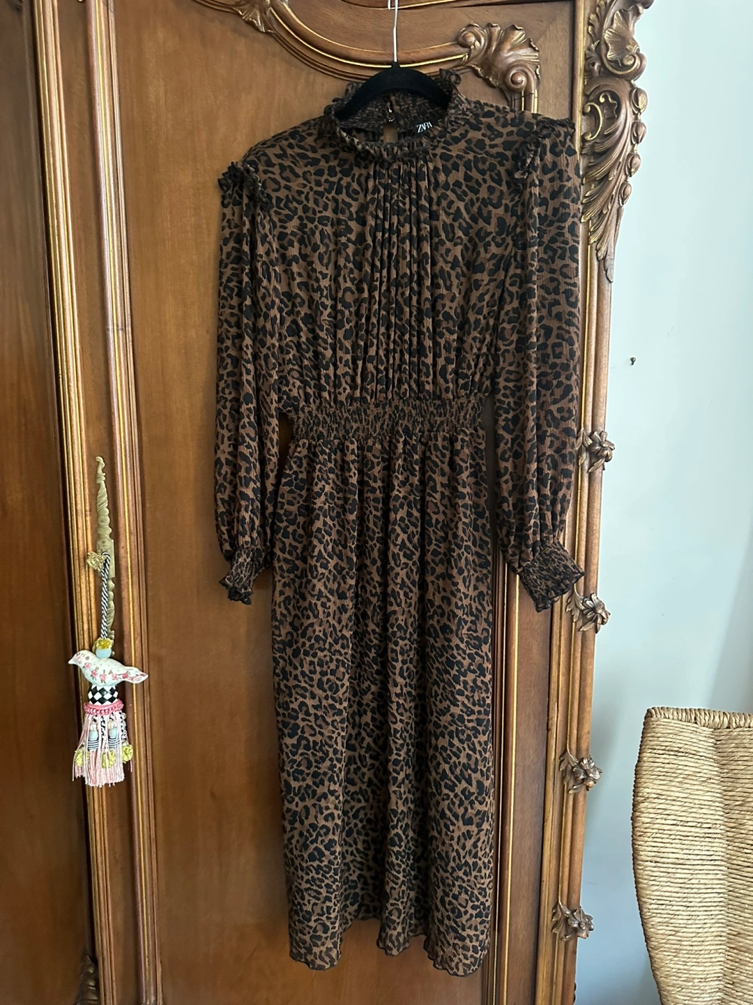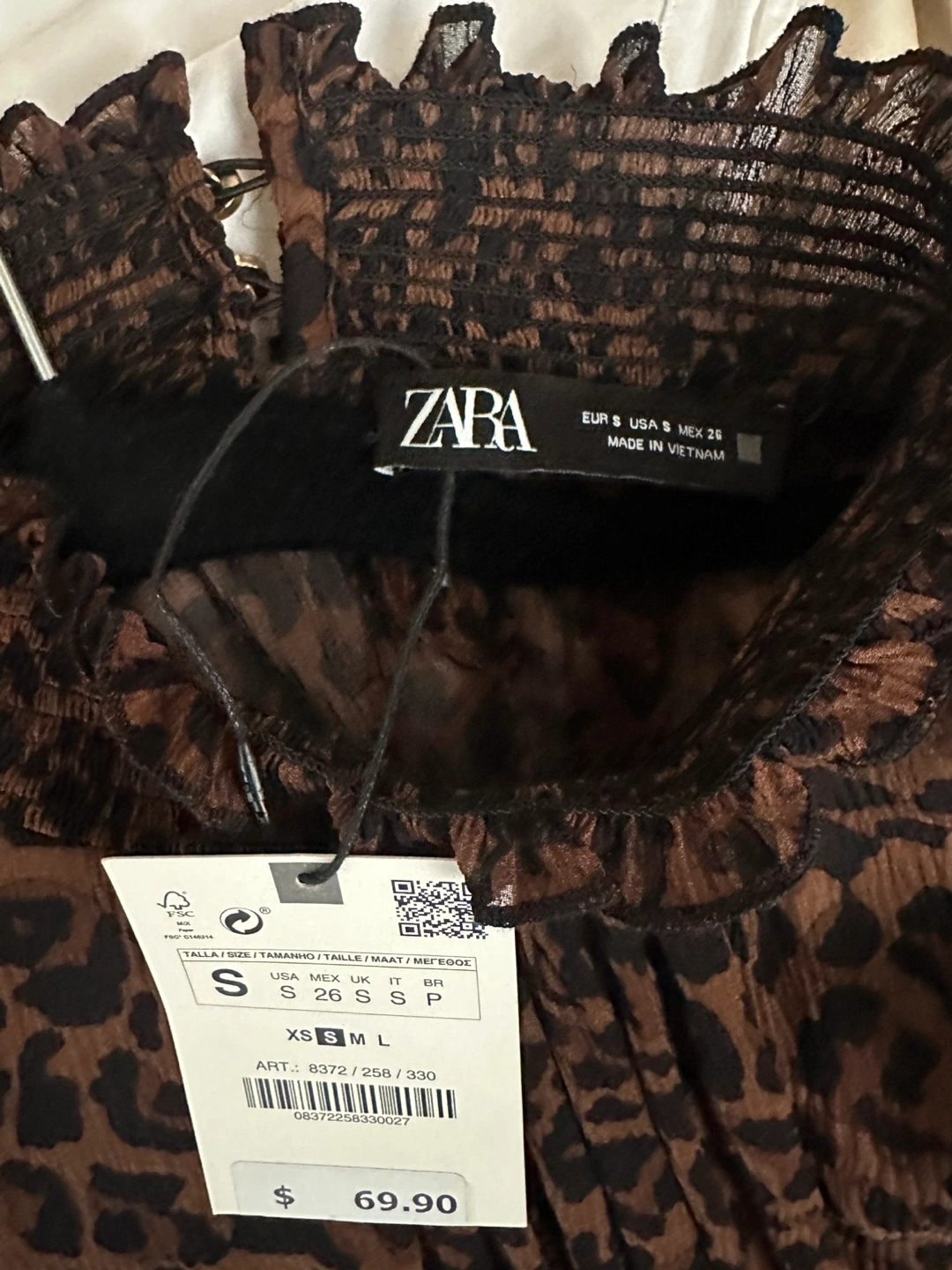New with tags ZARA leopard print midi dress women’s size small. Semi sheer, bottom is lined top is not.
