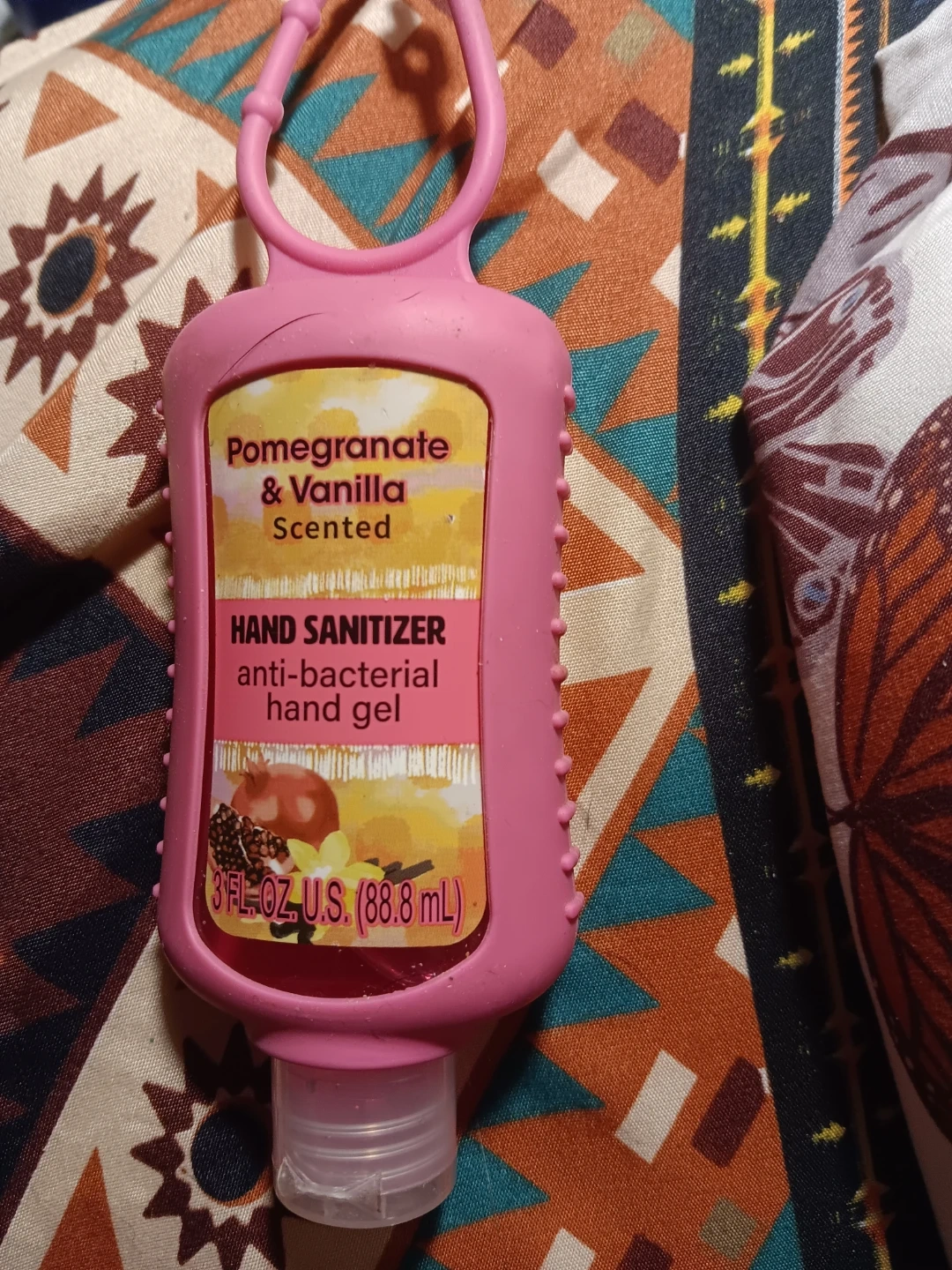 This is a Pomegranate & Vanilla Scented hand sanitizer. It's an anti-bacterial hand gel. 3 fl. oz. (88.8 mL).