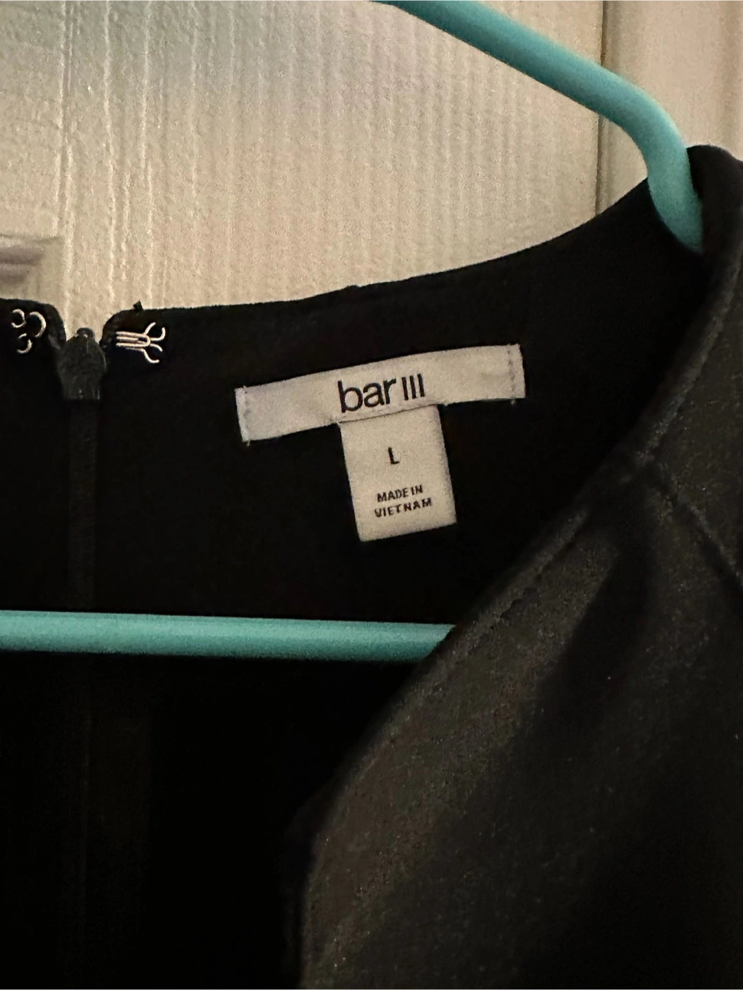 Selling a stylish black dress from Bar III in size L! This dress is perfect for any occasion and has a flattering fit. It's in good condition and ready for a new home