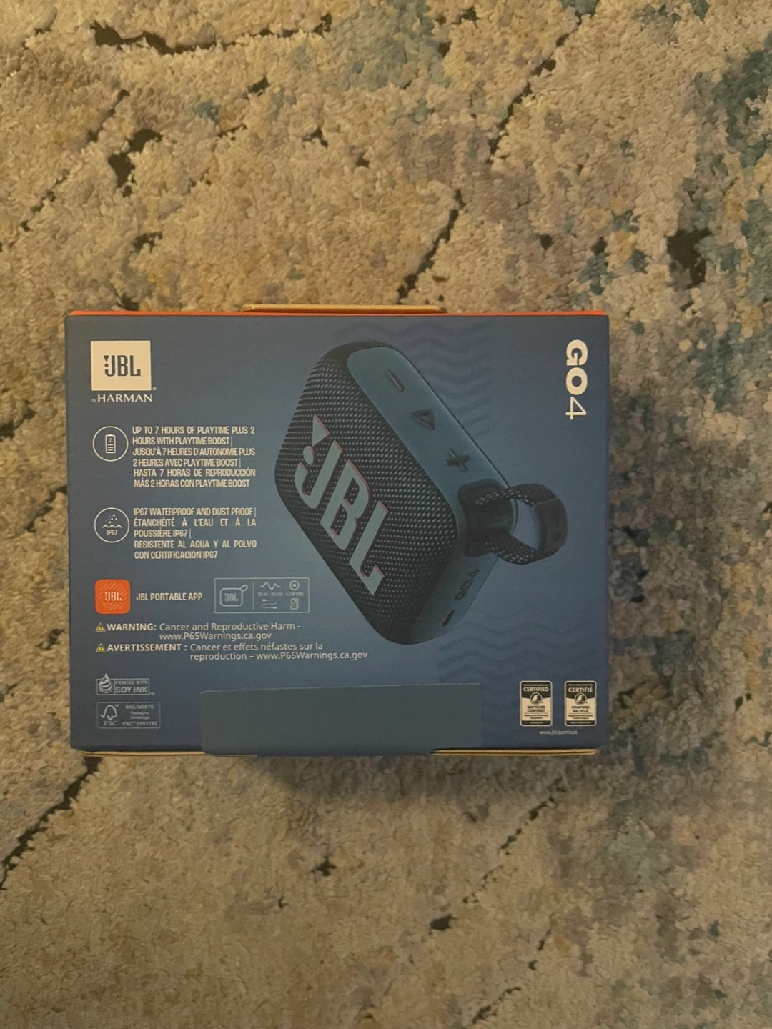 Selling a brand new JBL Go 4 portable Bluetooth speaker, still sealed in its original box! This compact speaker delivers up to 7 hours of playtime, plus 2 hours with Playtime Boost. It's also IP67 waterproof and dustproof, making it perfect for any adventure. Get ready to enjoy your favourite tunes on the go!