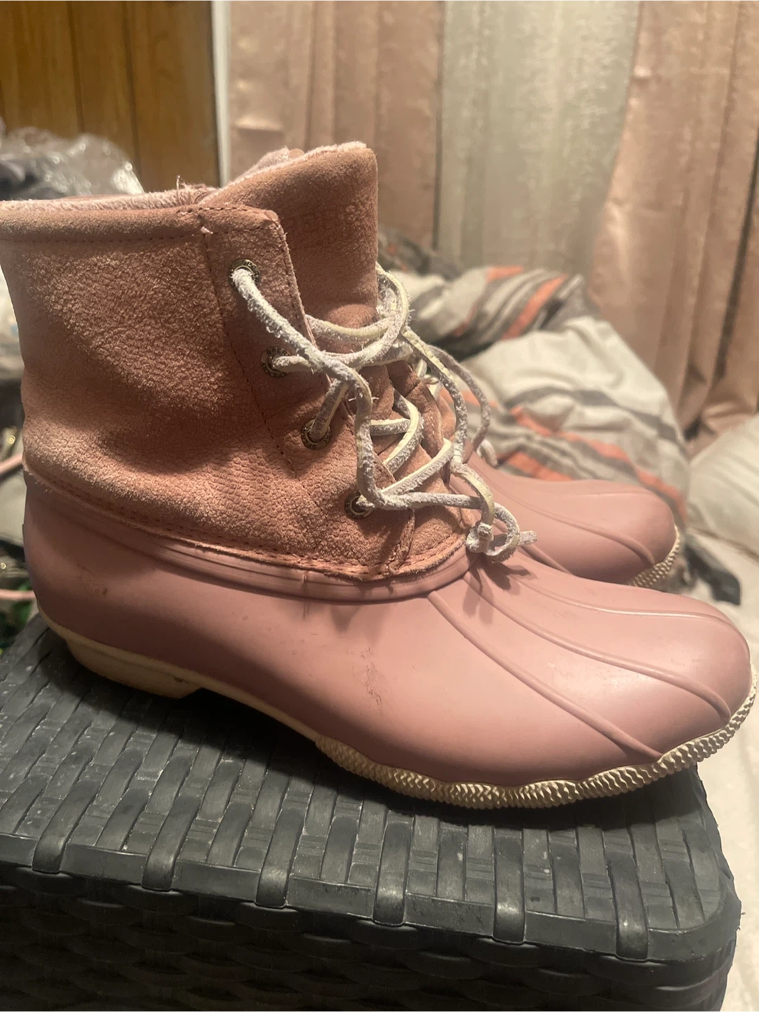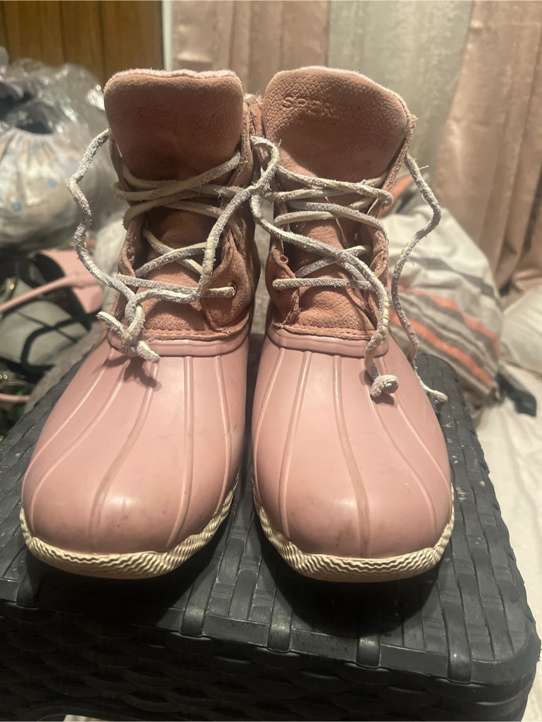 Selling a cute pair of pink Sperry duck boots! They're in good condition and ready for a new owner. Perfect for rainy days or just adding a pop of color to your outfit