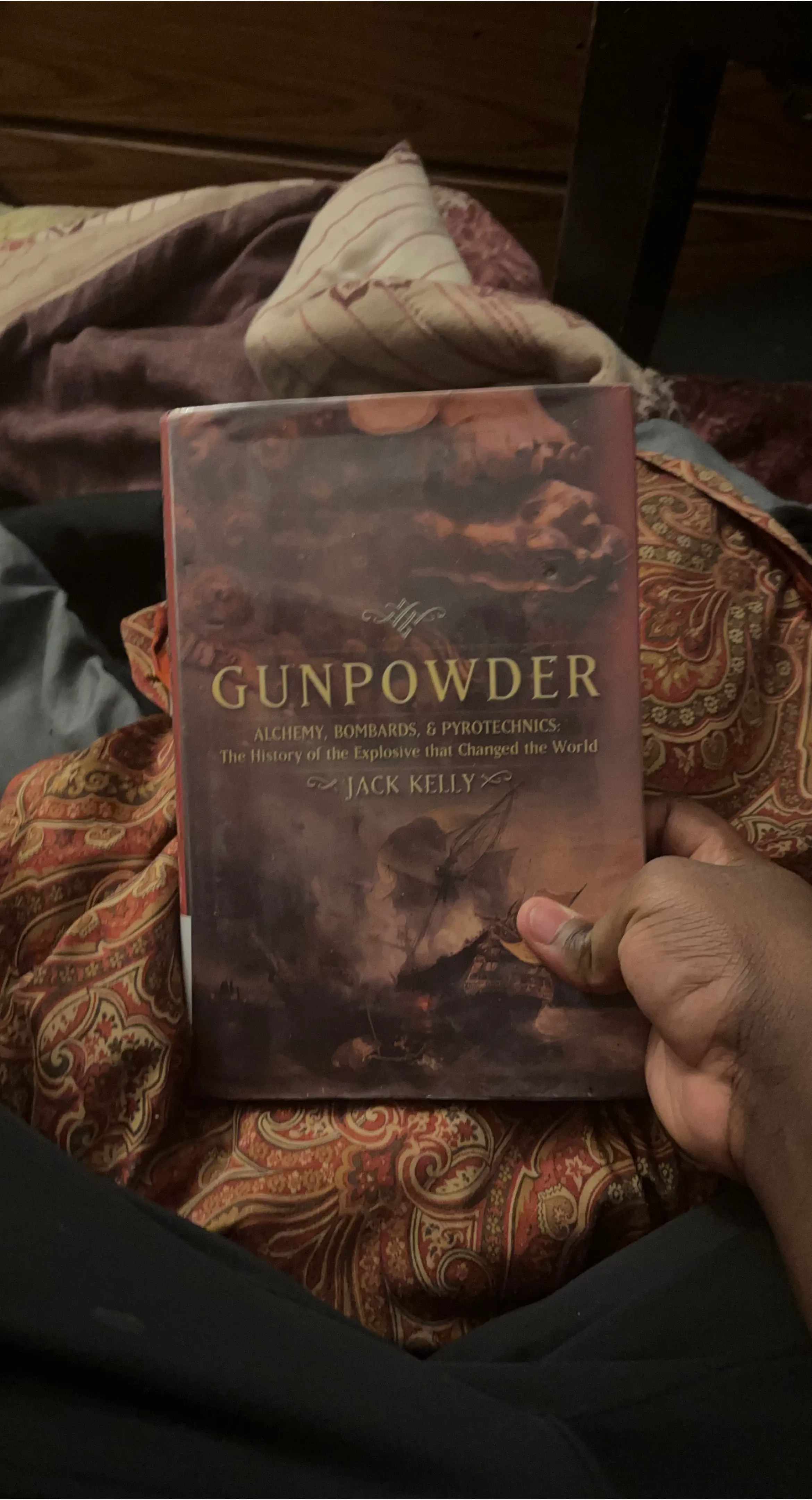 This book is "Gunpowder: Alchemy, Bombards, & Pyrotechnics: The History of the Explosive that Changed the World" by Jack Kelly. It explores the history and impact of gunpowder.