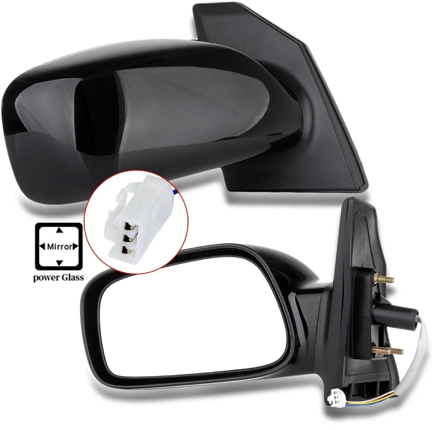 This is a black power glass driver side view mirror. It's designed for automotive use. Includes the connector for power glass functionality.