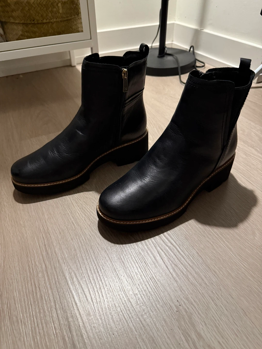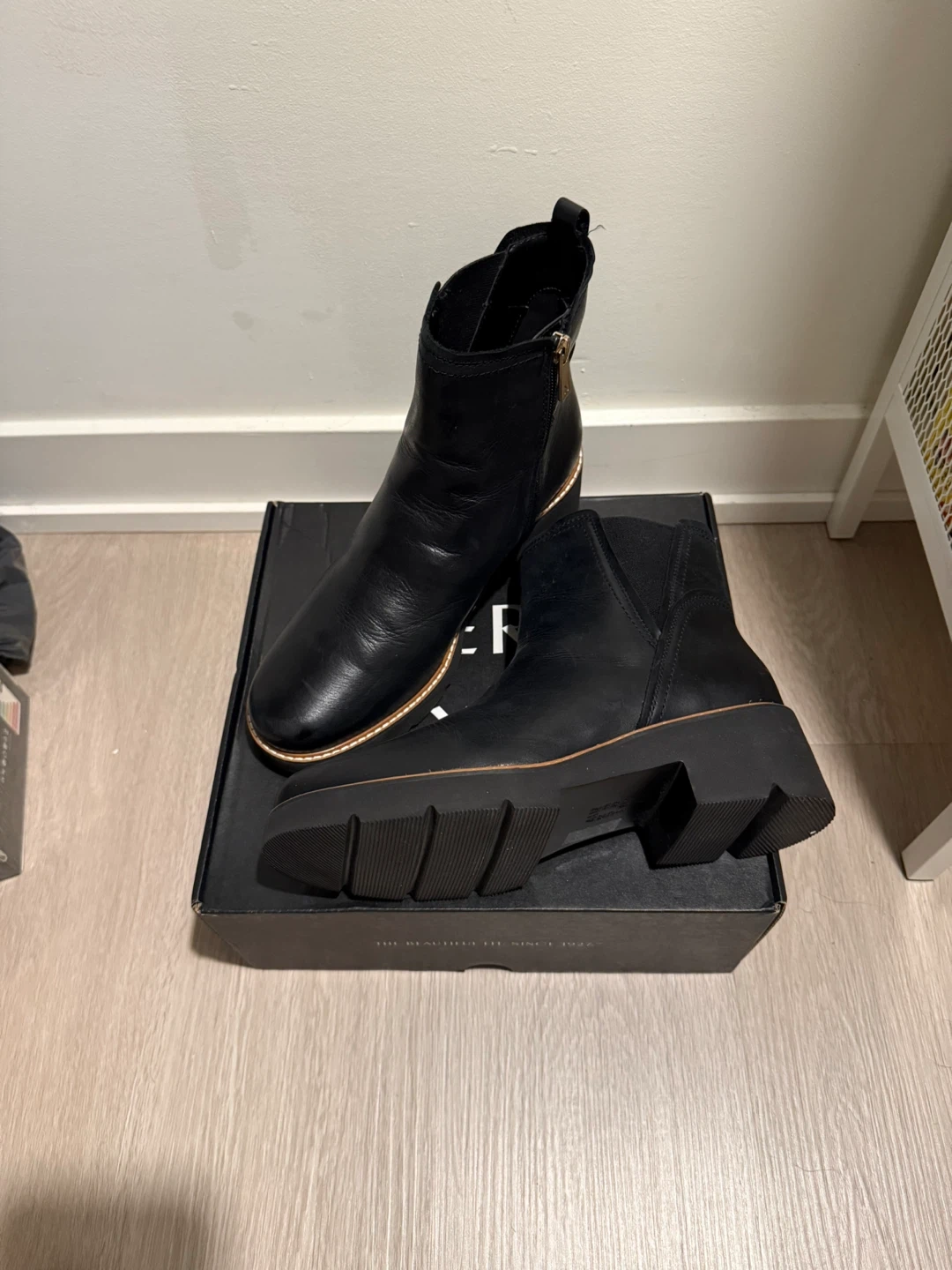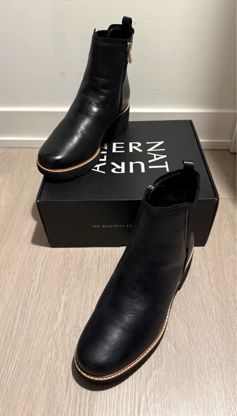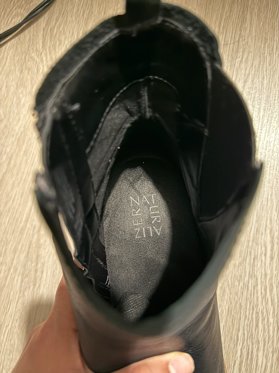 Chic black leather Chelsea boots from Naturalizer. These boots feature a side zip closure and elastic gore panels for easy wear. They have a durable sole and a comfortable fit. Perfect for everyday wear! Wore it twice since I found a better fitting pair for myself.