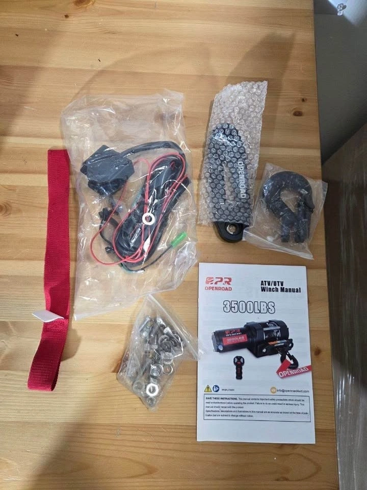 Selling a heavy-duty OPENROAD 3500 lb electric winch, great for ATVs, UTVs, trailers, and off-road recovery. It's powerful and reliable, featuring a durable synthetic rope and a wireless remote control.