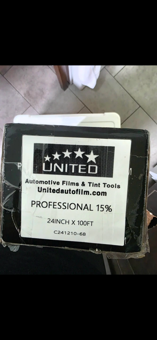 United Automotive Films Professional Window Tint Film. This tint is 15% VLT (Visible Light Transmission). It's 24 inches wide and 100 feet long. Offers UV protection and color stable performance. Scratch resistant and heat shrinkable!