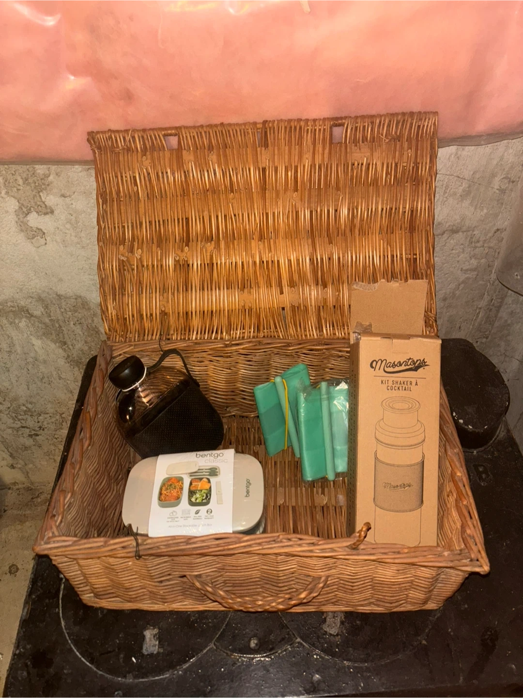 • Classic wicker picnic basket (sturdy + great condition)
