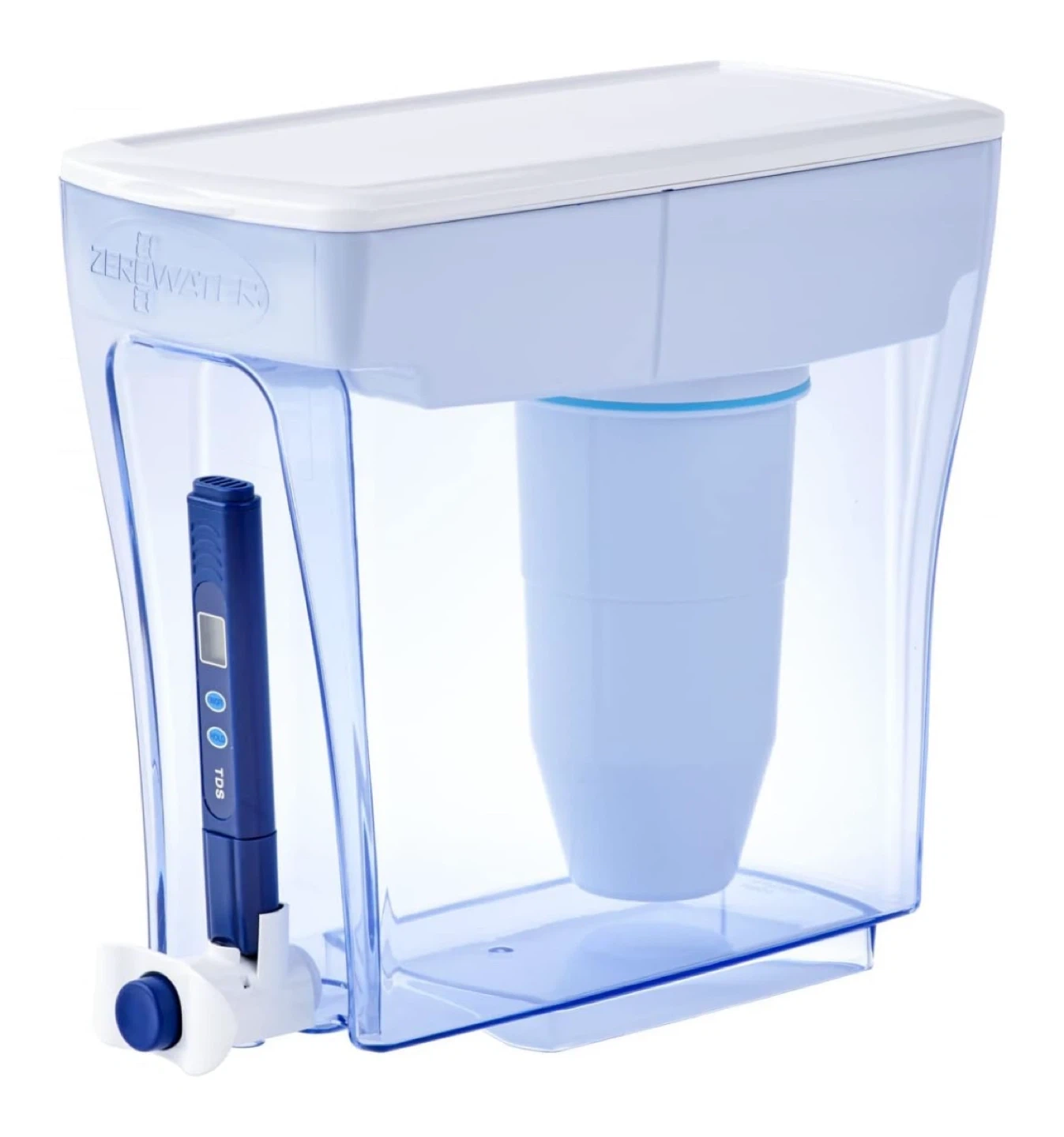 This ZeroWater dispenser offers a large 20 cup / 4.7-liter capacity. It features a push-to-dispense spigot and comes with a free TDS meter. Filter is included.