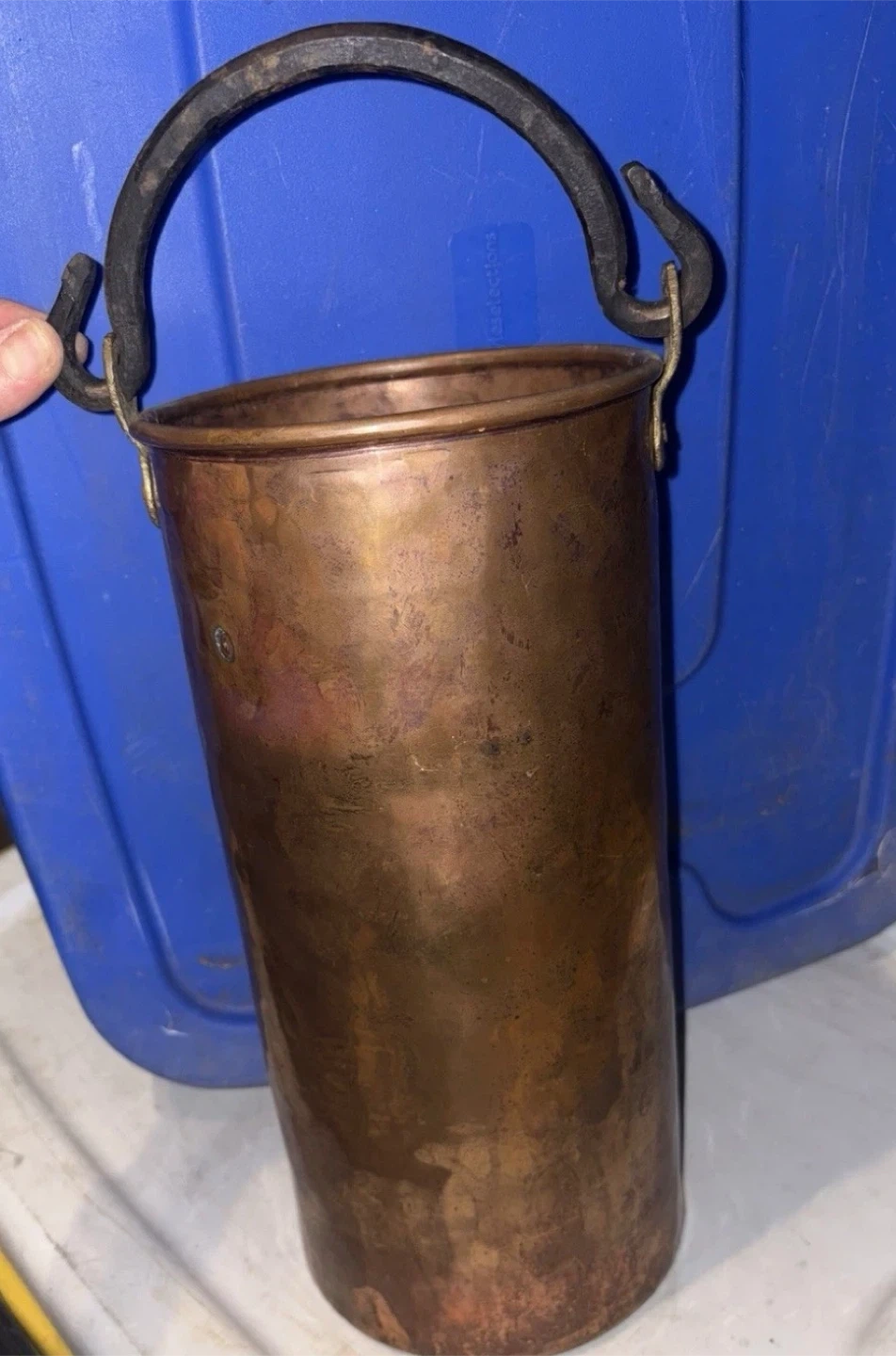 Condition: Excellent vintage condition. Features a rich, natural patina with minor age-appropriate surface wear. The interior shows authentic oxidation (verdigris), adding to its rustic character. No major dents or structural damage.