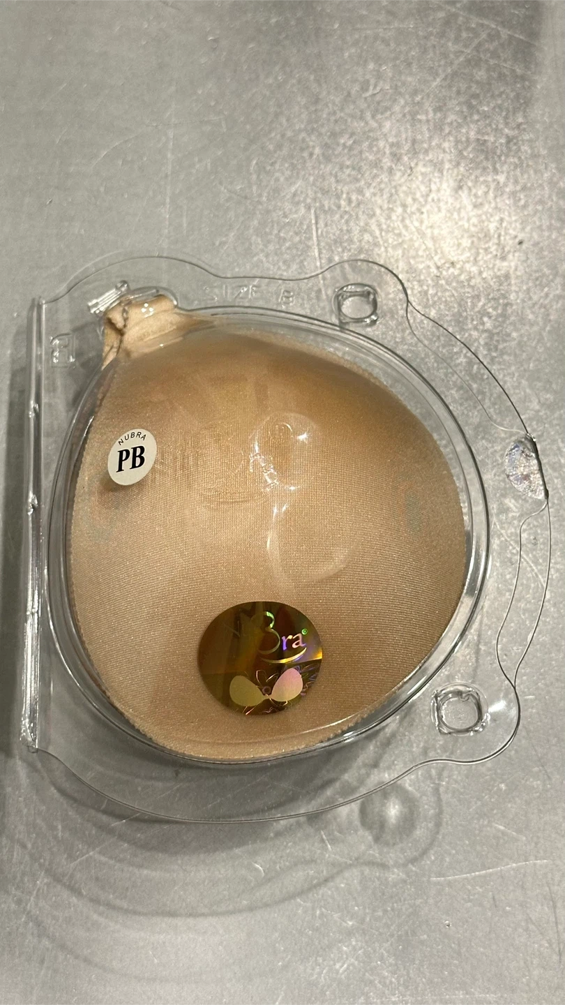 Reusable Nubra PB stick-on bras offer a discreet lift and shape. They're made with a silicone adhesive for secure wear. Silky fabric surface makes them ideal for backless or strapless outfits!