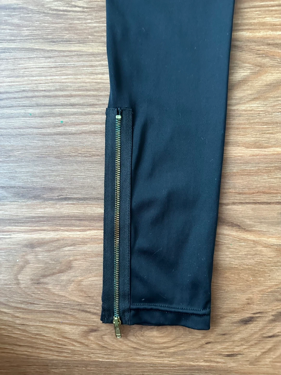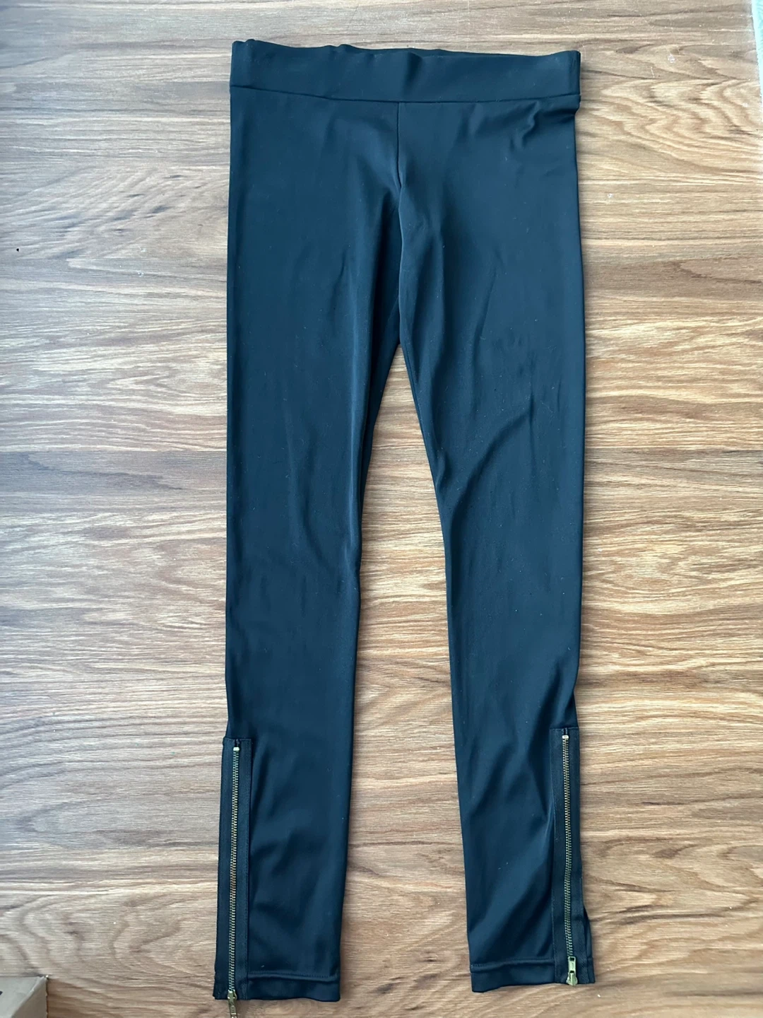 Selling a pair of low rise black leggings from Domino City. They are a size medium and feature zippers near the ankles. They're in great condition and ready for a new owner!