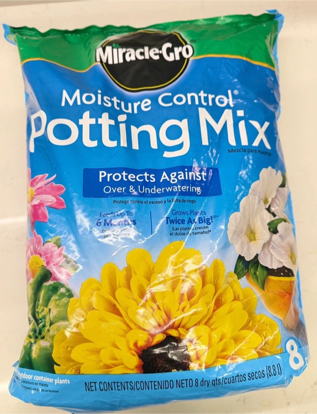 🧡 Unopened bag of Miracle-Gro Moisture Control Potting Mix. It protects against over and underwatering and feeds up to 6 months! Perfect for outdoor container plants. Net contents: 8 dry quarts (8.8 L)