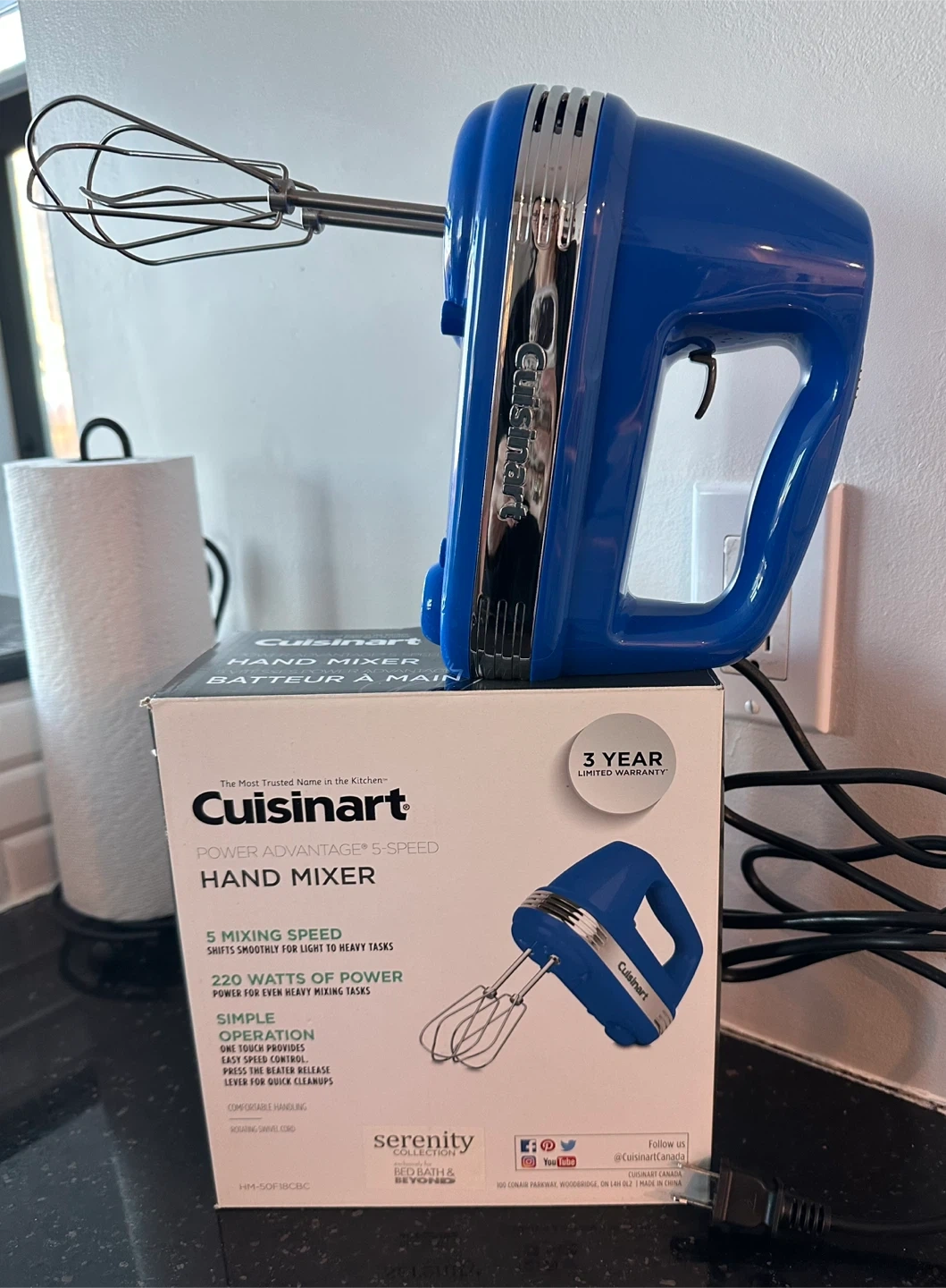 $30-Brand New-Cuisinart Hand Mixer 5speed in box never used Blue in color ,serious buyers .Firm price -pickup/meet Scarborough ( pharmacy and ellesemere) Mississauga(Courtneypark and Kennedy ) or south Etobicoke(Sherway mall)