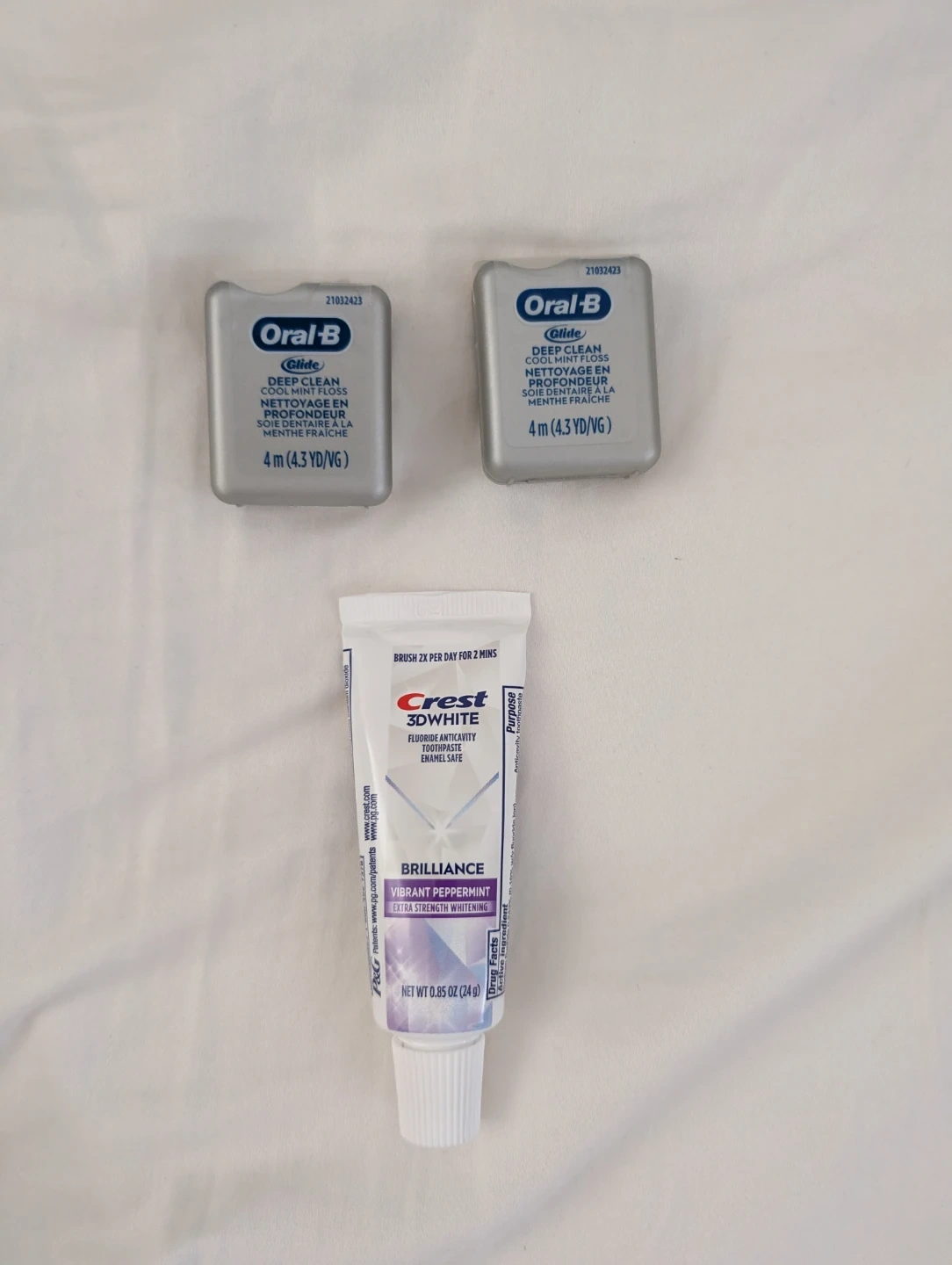 Oral B Glide Floss & Crest 3D White Toothpaste travel size