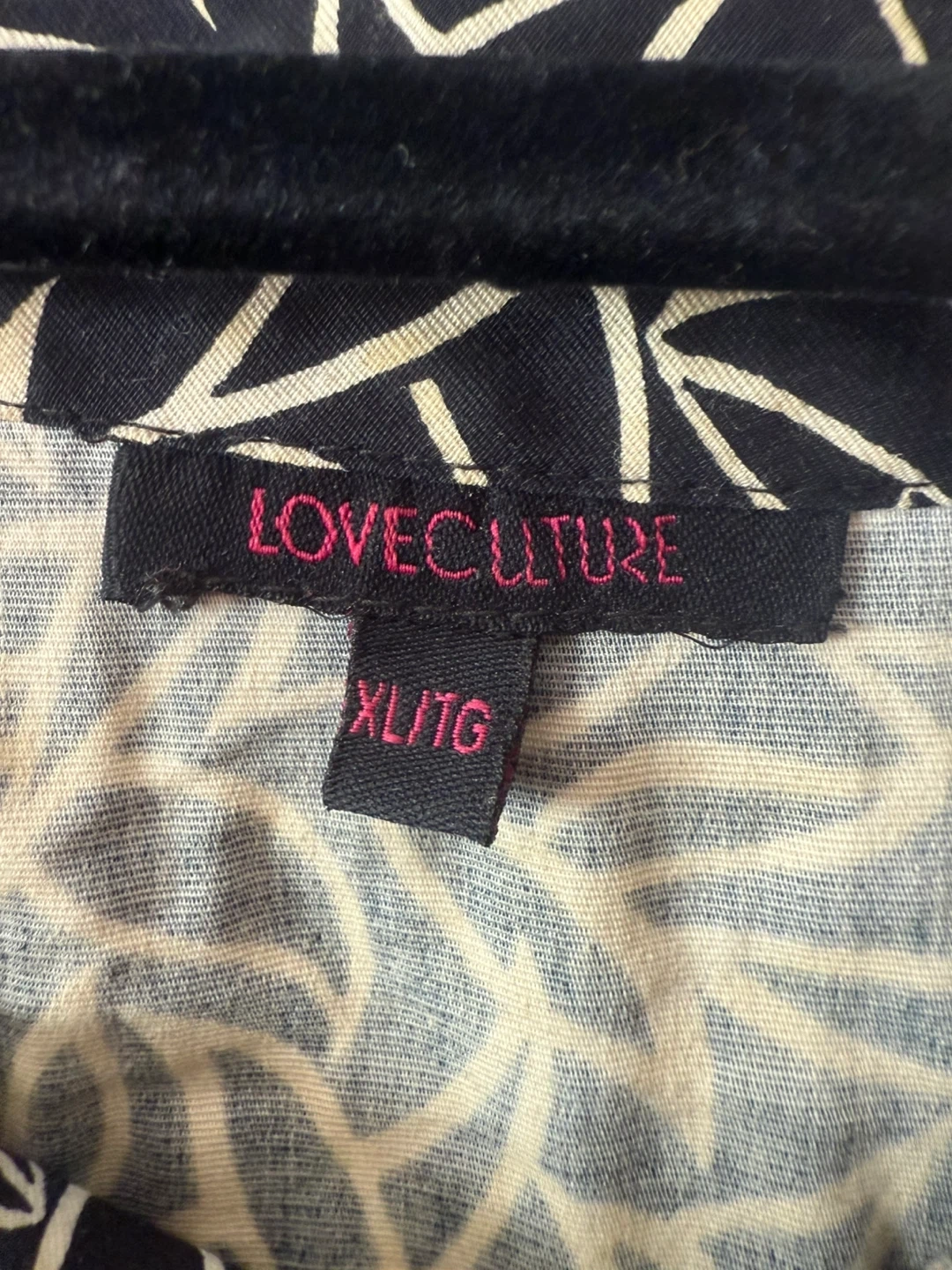 Selling a Love Culture dress in size XL/TG. It features a black and white leaf pattern. Perfect for any occasion