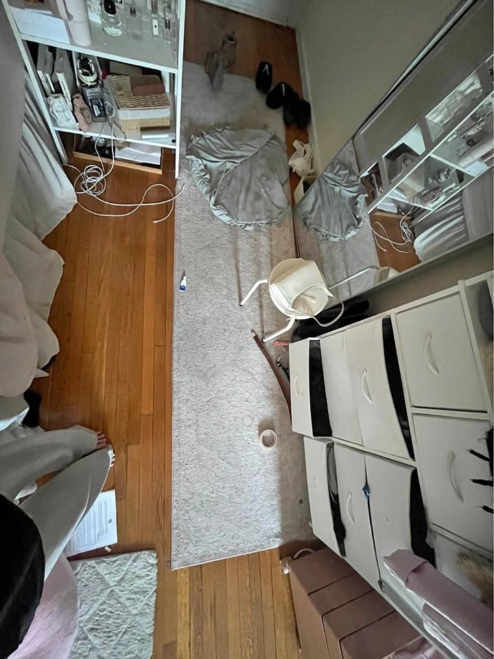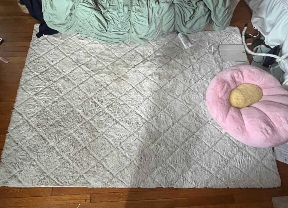 Neutral long carpet for sale. This light pink/beige runner is a nice addition to any room. Has soft texture. White fluffy carpet (shoe free house).
