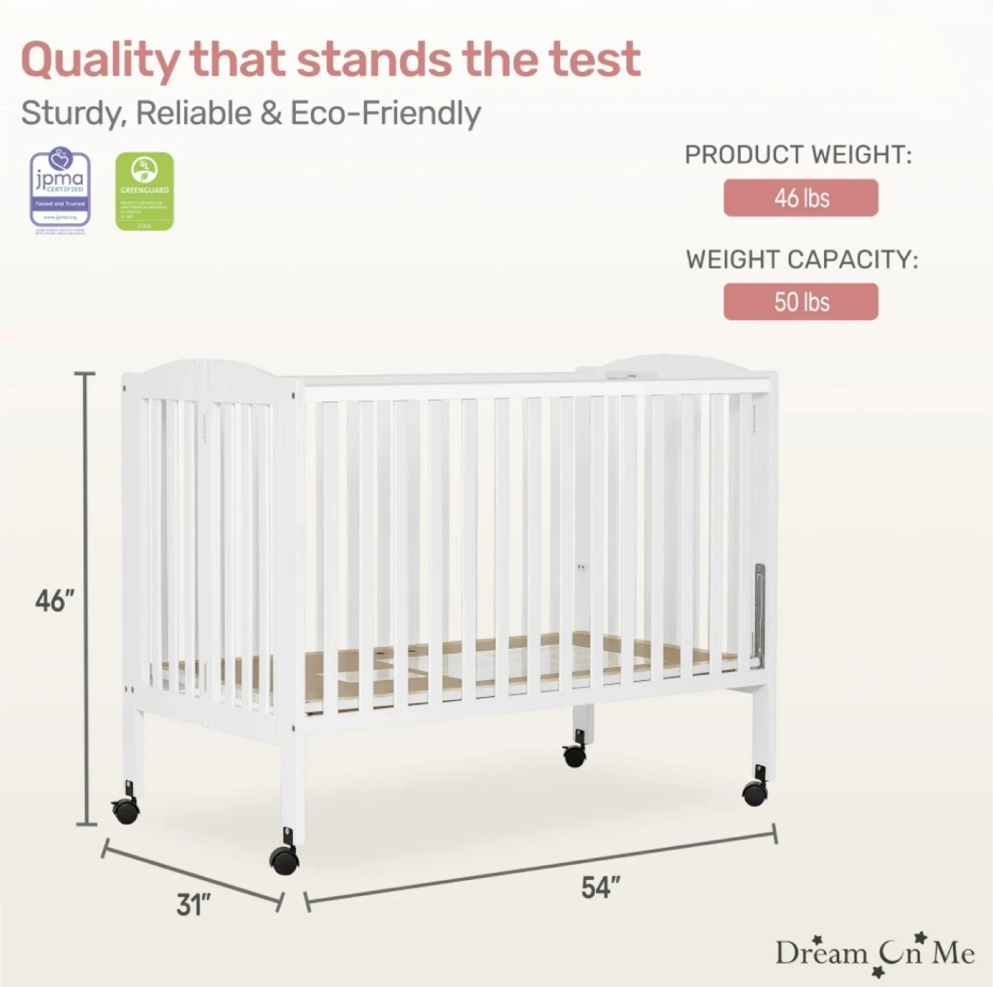 Dream On Me: Full Size 2-in-1 Folding Stationary Side Crib is a convenient 2-position folding crib
