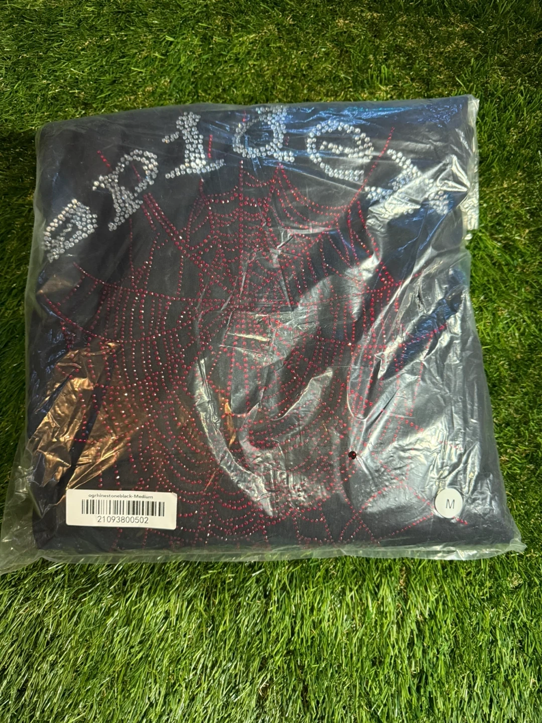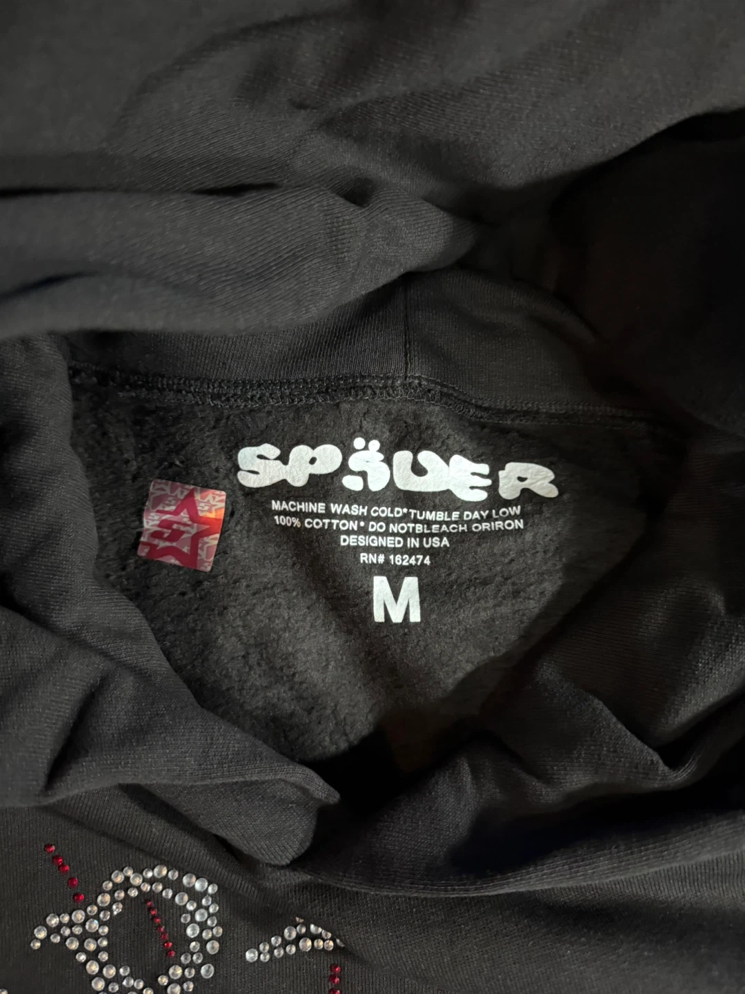 Spider Worldwide Hoodie Black Rhinestone Spiderweb Size M