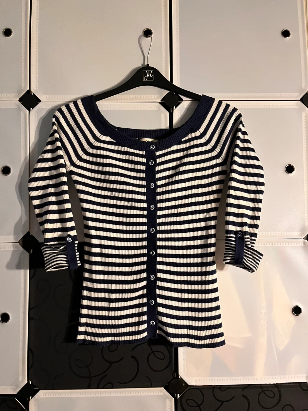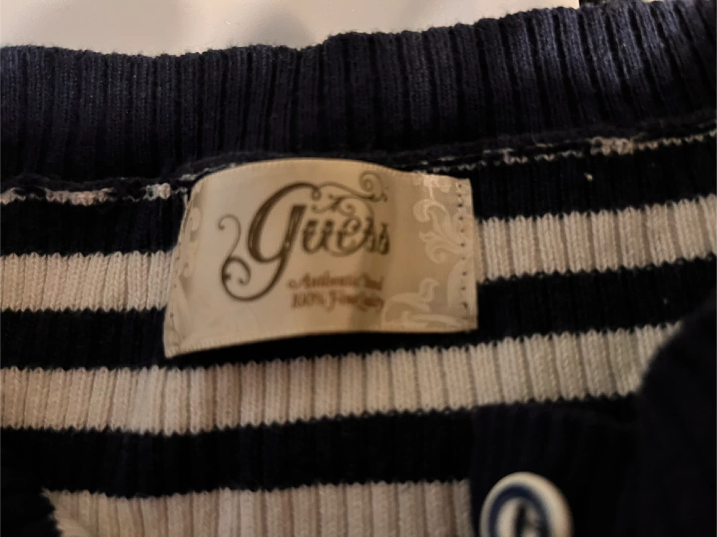 Selling a cute Guess cardigan with a striped design! It's a button-down style and would be a great addition to any wardrobe