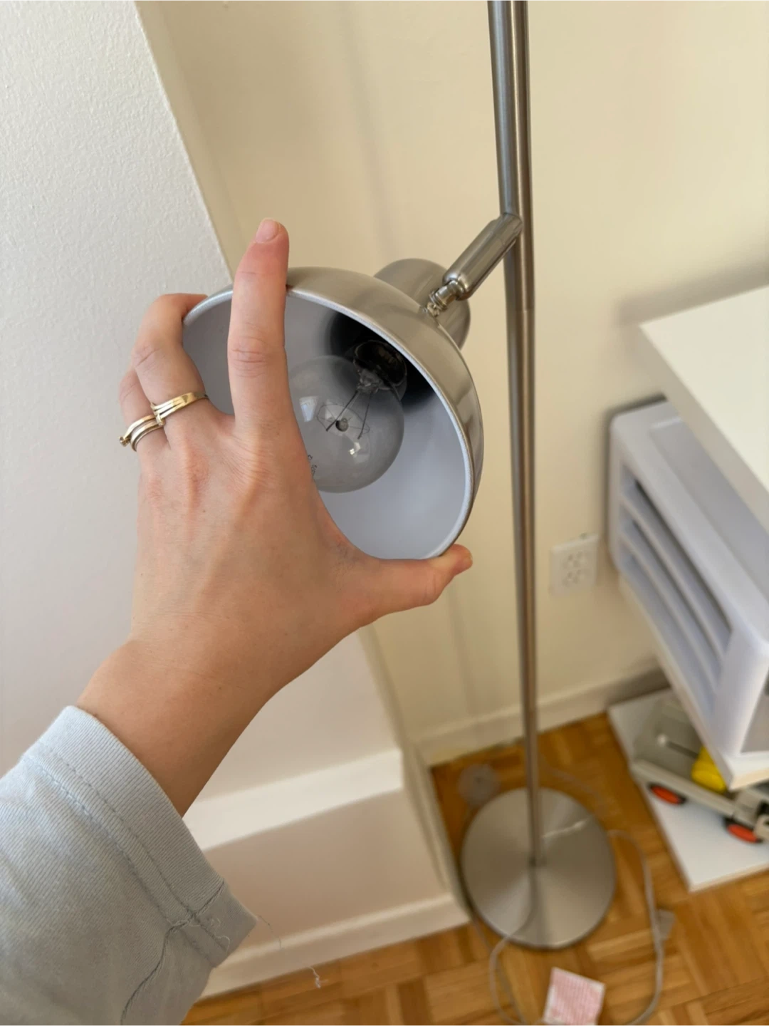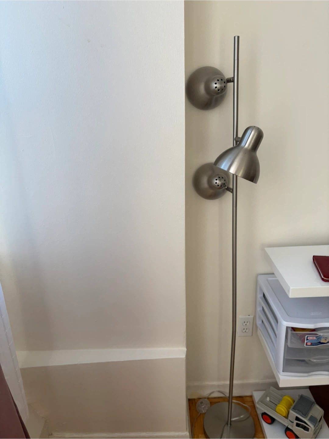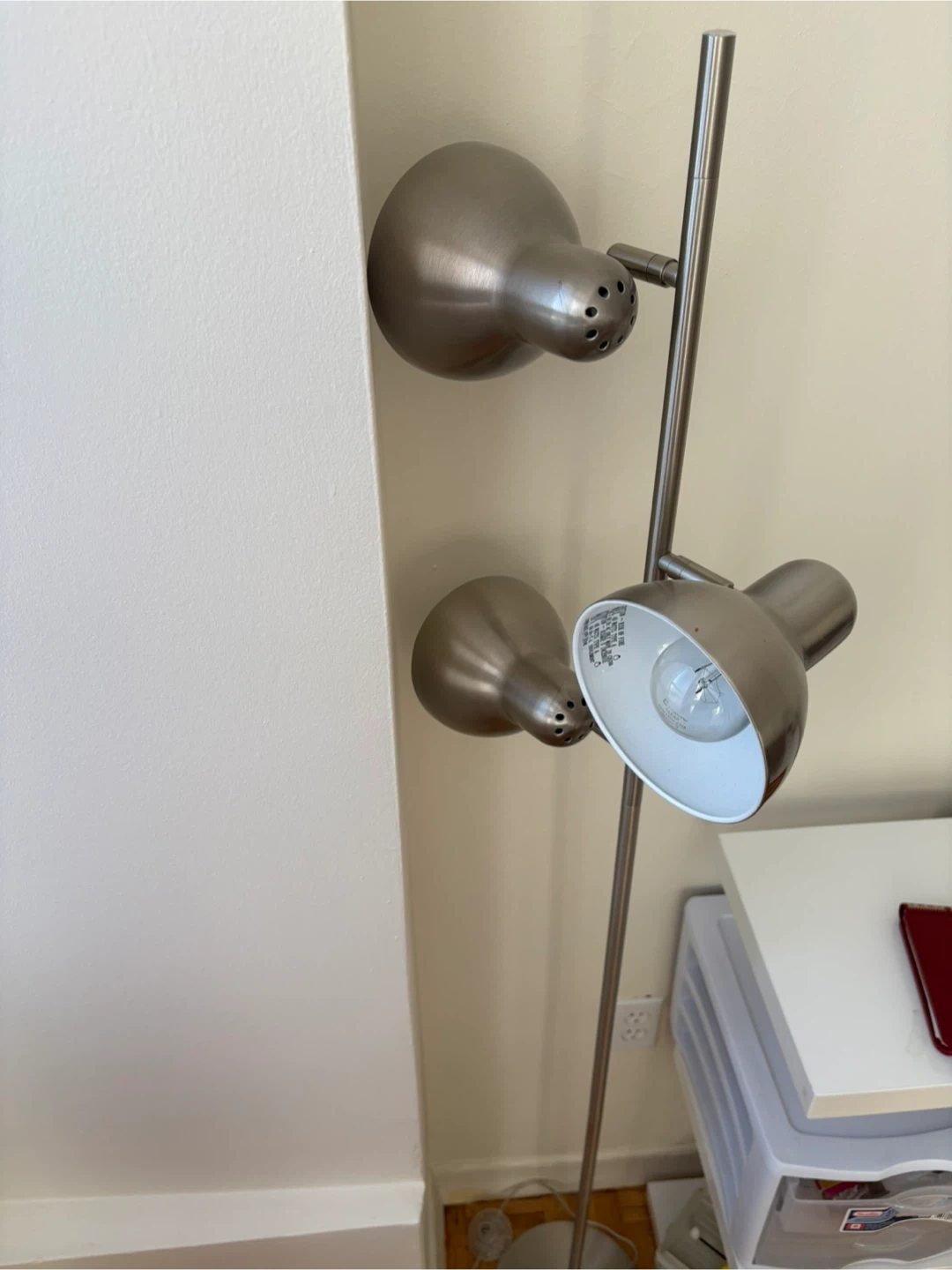This floor lamp has a sleek silver finish and three adjustable heads. It's a great way to add task lighting to any room. The brushed metal construction ensures durability.