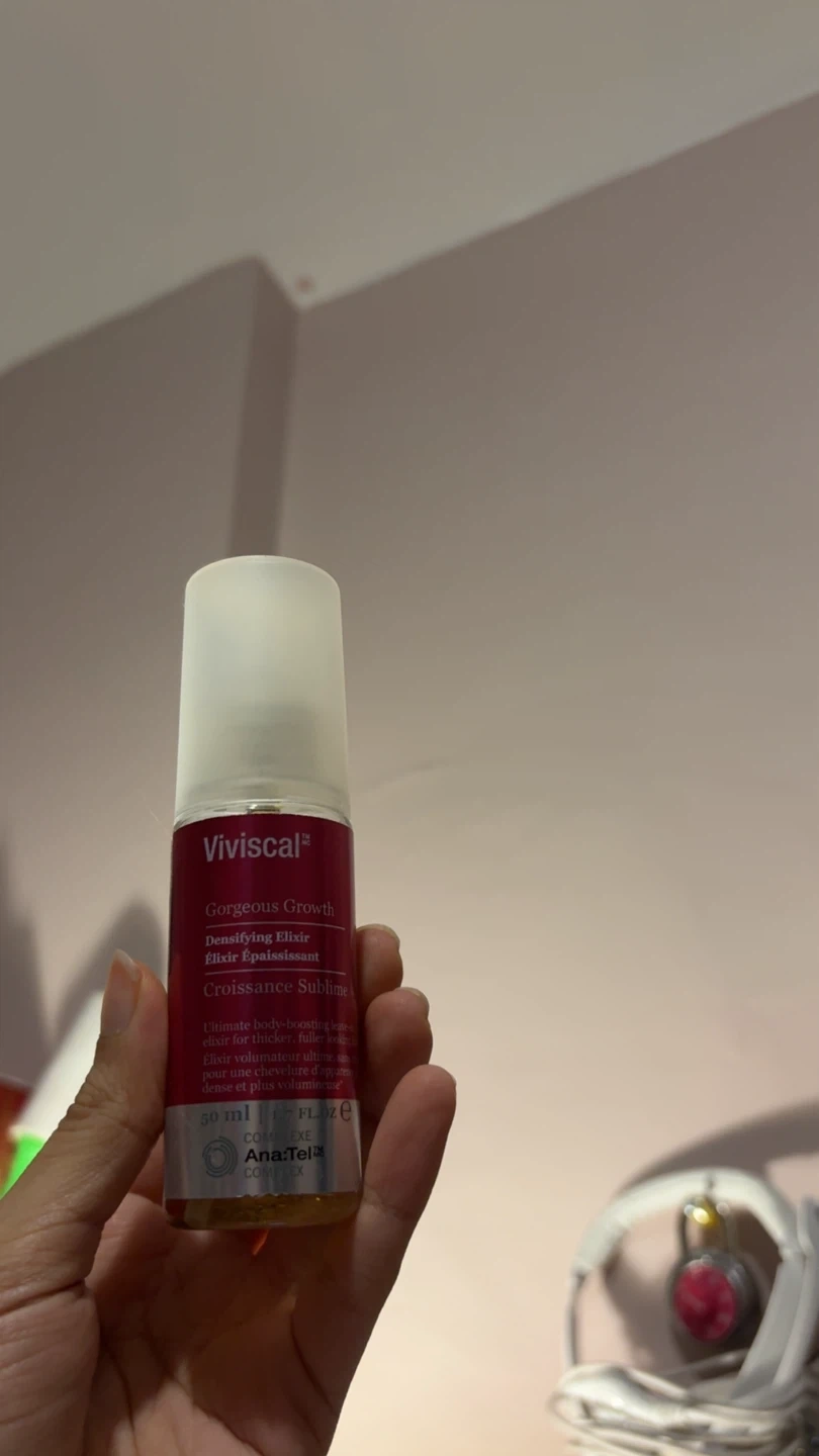 Viviscal Gorgeous Growth Densifying Elixir is an ultimate body-boosting leave-in elixir for thicker, fuller hair. This elixir is 50ml. It contains the Ana:Tel Complex. It’s a bit used