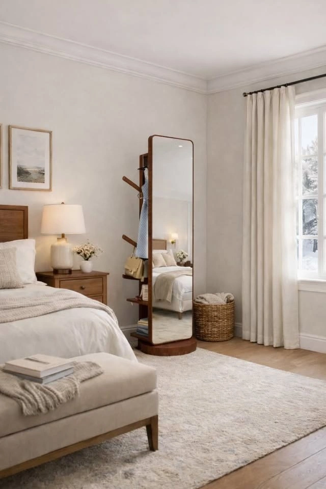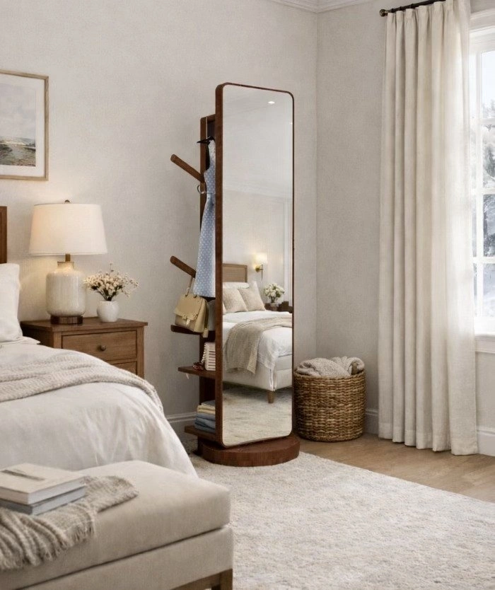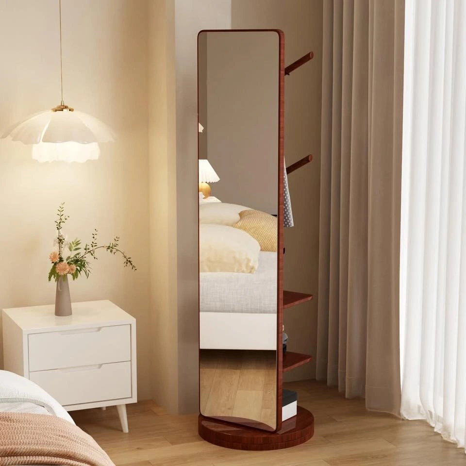 Wood Full Length Mirror with Storage & Coat Rack - Brand New