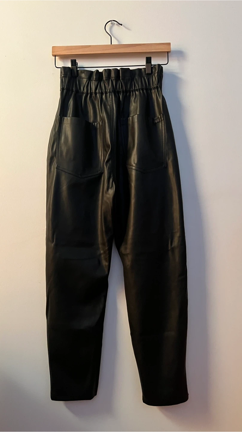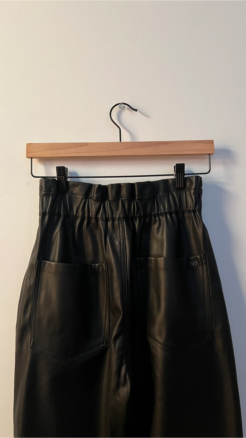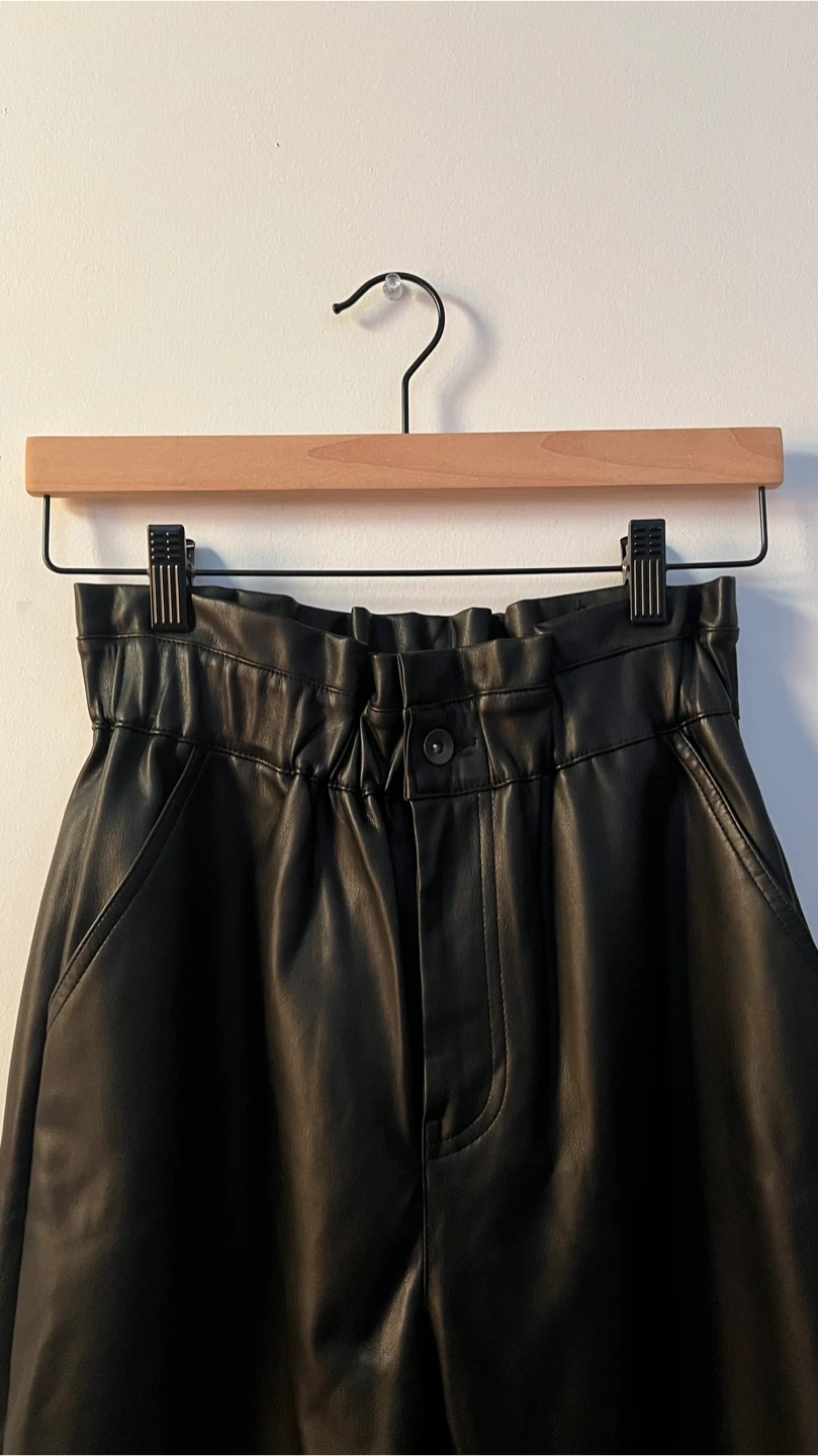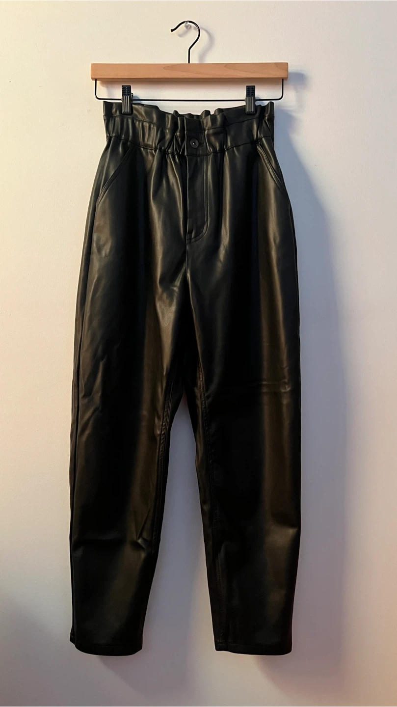 These Zara faux leather pants are in great condition! They feature a paperbag waist and a stylish black color. Perfect for adding a touch of edge to your wardrobe!