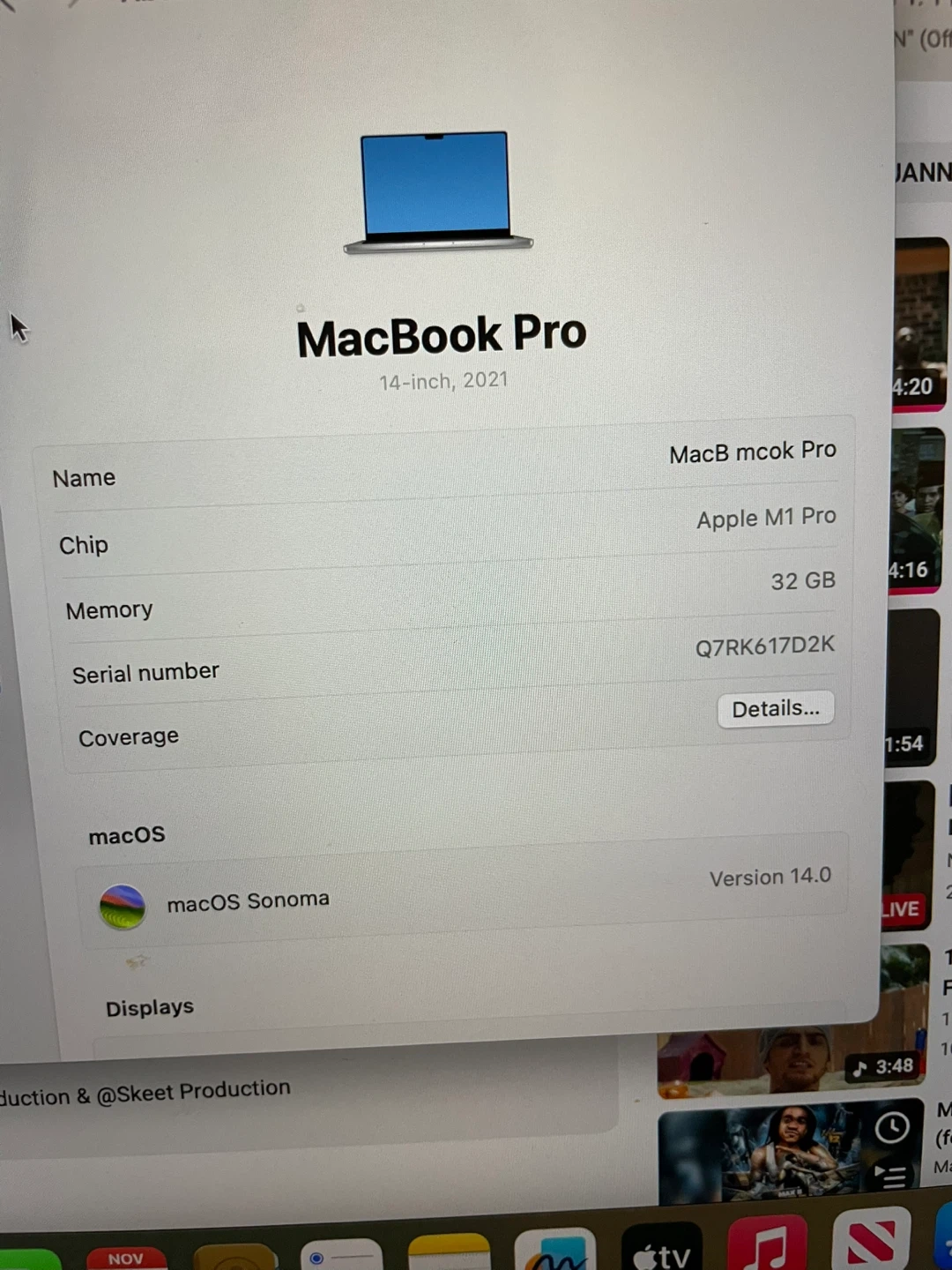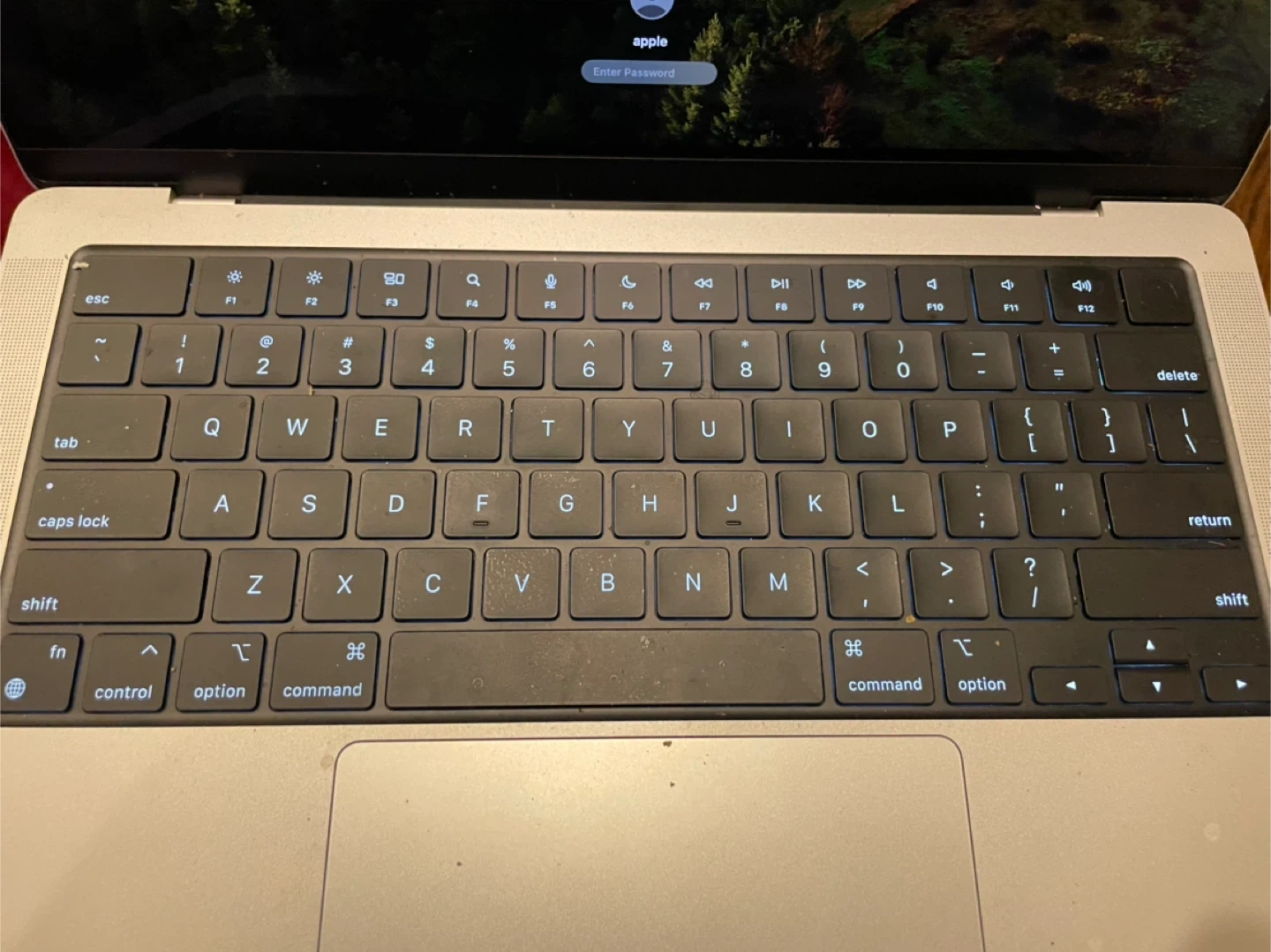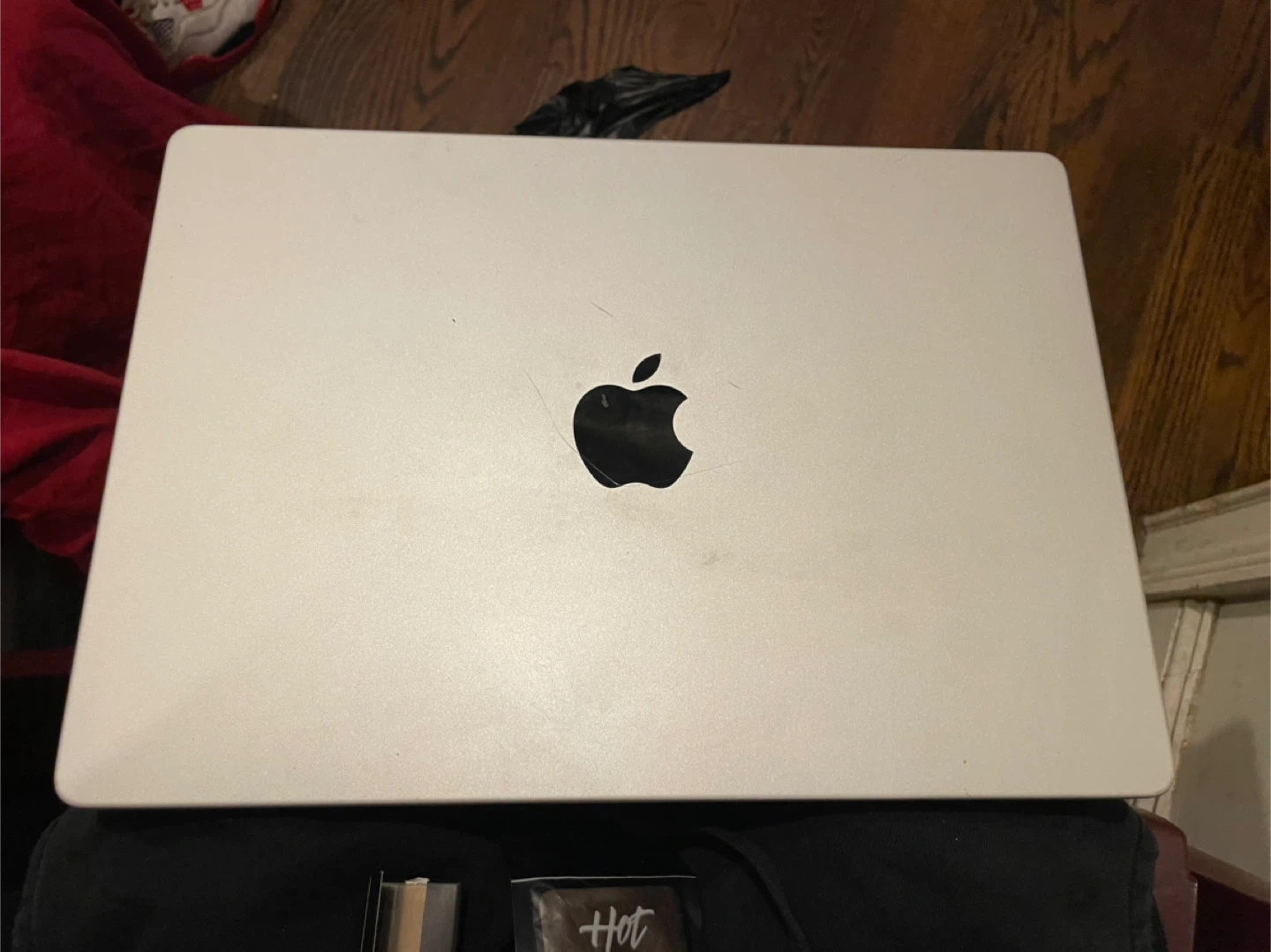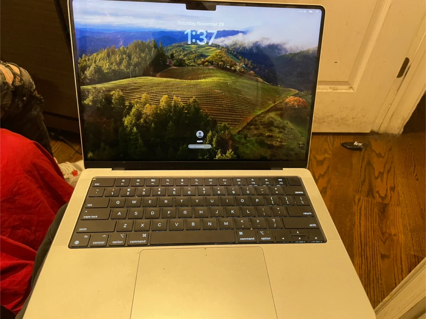 Selling a MacBook Pro 14-inch with the Apple M1 Pro chip and 32 GB of memory. It's in good condition with some signs of use.