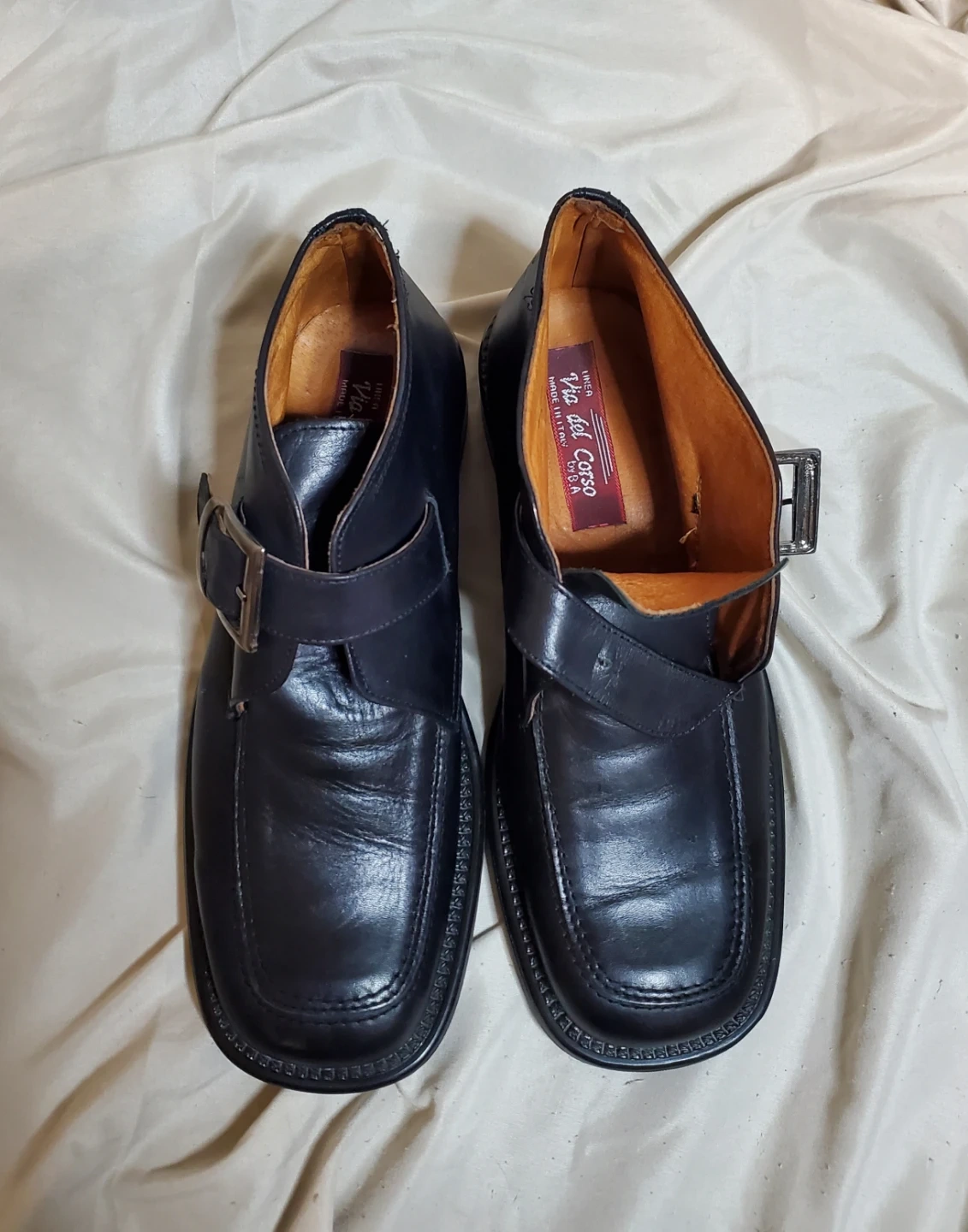 Via del Corso Classic black leather boots with a buckle closure. Size 41. Made in Italy.