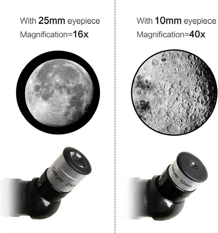 Superior Optics: 400mm(f/5.7) focal length and 70mm aperture, fully coated optics glass lens with high transmission coatings creates stunning images and protect your eyes. Perfect for astronomers to explore stars and moon. Magnification: Comes with two replaceable eyepieces and one 3x Barlow lens. The 3x Barlow lens trebles the magnifying power of each eyepiece. 5x24 finder scope with mounting bracket and cross-hair lines make locating objects easily. Wireless Remote: Includes one smartphone adapter and one wireless camera remote to explore the world easily through the screen and take amazing celestial images. Adjustable Tripod: Allows for many different viewing positions with an adjustable aluminum alloy tripod and a carry bag. The telescope and tripod fit inside the bag for easy traveling and storage.