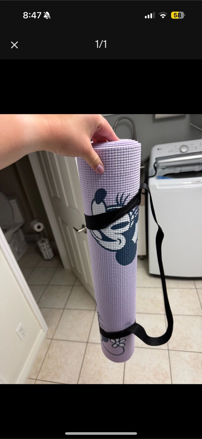 Selling a cute yoga mat with a Minnie Mouse design! It's in great shape and ready for your next workout or stretching session. Comes with a handy carrying strap for easy transport