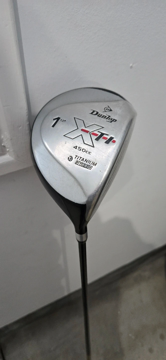 Dunlop XTI driver with a 460cc titanium head. It has a 10-degree loft and forged face. This club is black with silver accents. It's ready for the golf course!