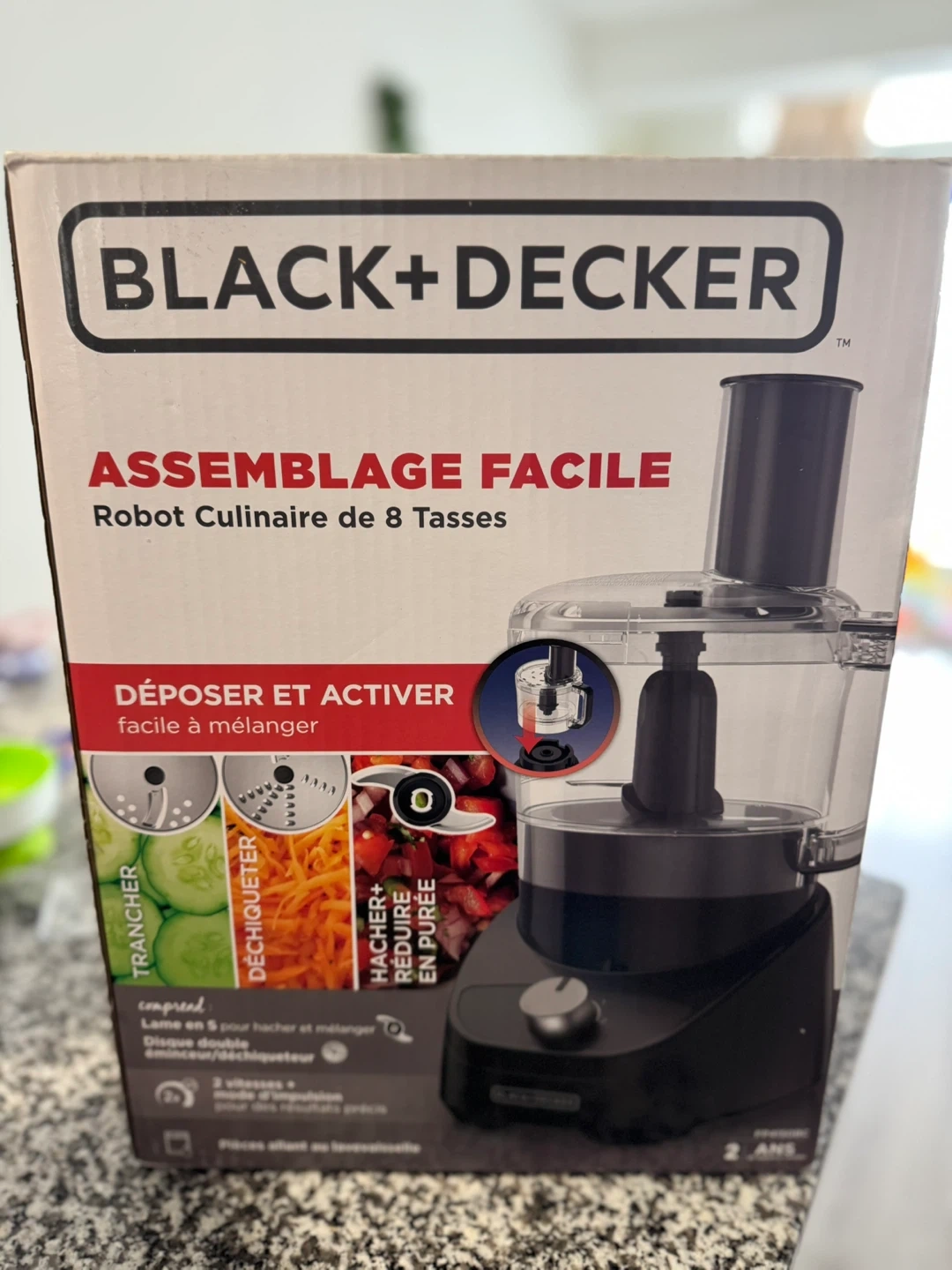 This BLACK+DECKER food processor has easy assembly. It comes with a reversible slicing and shredding disc and a stainless steel S-blade. It has a powerful 450-watt motor and is dishwasher-safe.