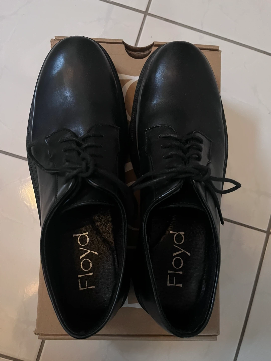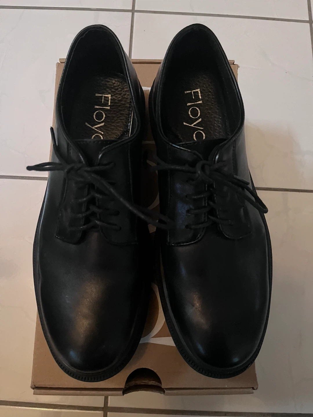 Selling a pair of Floyd Leroy Noir shoes in black, size 9.5. I only worn it once as they are too small for me. They come with the original box!