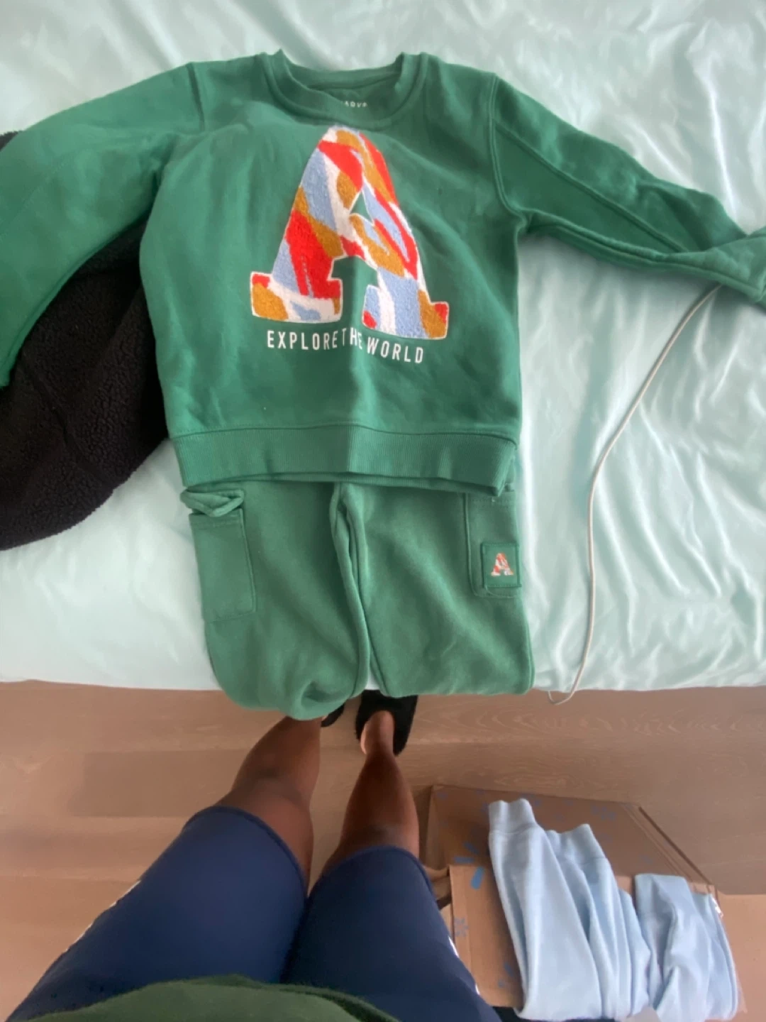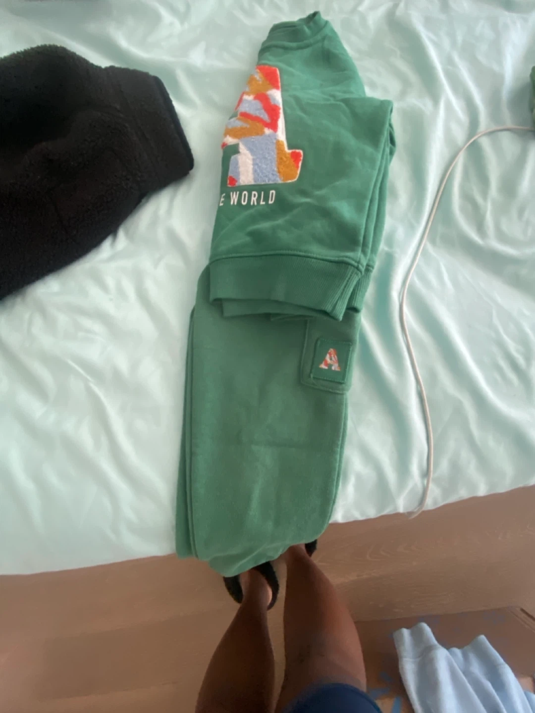 This is a cute green ADVP kids set with "Explore The World" on the sweatshirt. It's in great condition and ready for a new home! From Primark toddler size 4-5