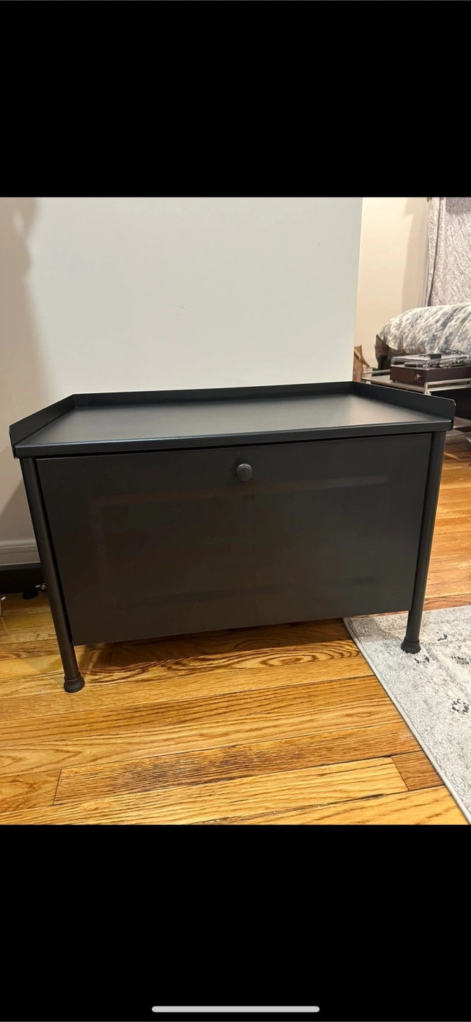 Selling a black IKEA KORNSJÖ storage bench. It's in great condition and ready for a new home! Perfect for extra storage and a stylish addition to any room. Retails for $99.99 selling for 50