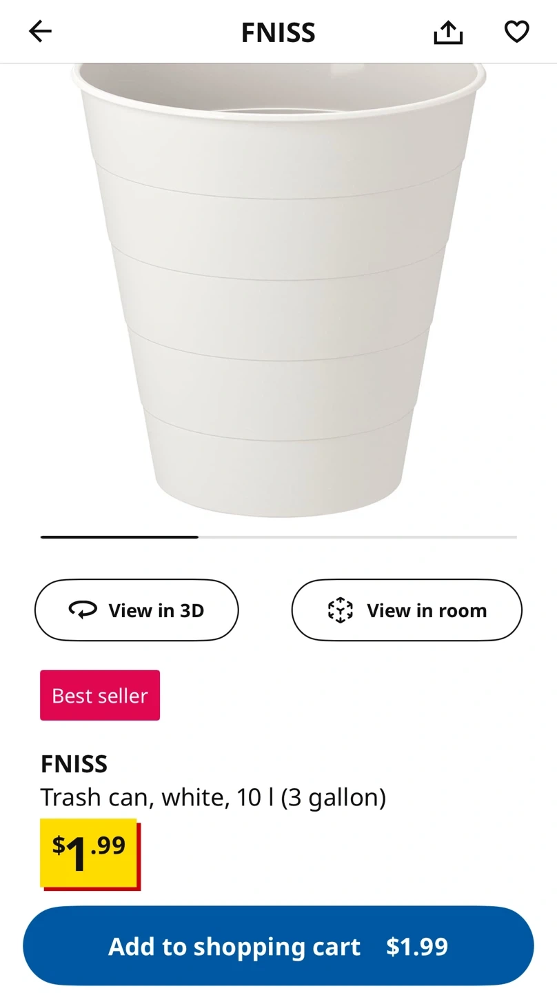 Selling two IKEA FNISS trash cans in white! They each hold 10L (3 gallons). They're in great shape and ready for a new home. Originally bought for $1.99 each
