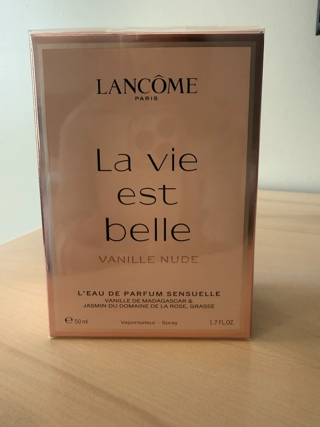 Lancôme La Vie Est Belle Vanille Nude Eau de Parfum Sensuelle spray. It's 50ml and comes in a spray bottle. Contains notes of vanilla de Madagascar and jasmine du domaine de la rose.