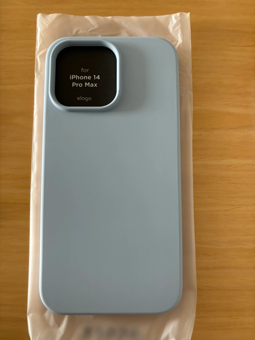 New Elago silicone case for the iPhone 14 Pro Max in the colour light blue. This case is in its original packaging.