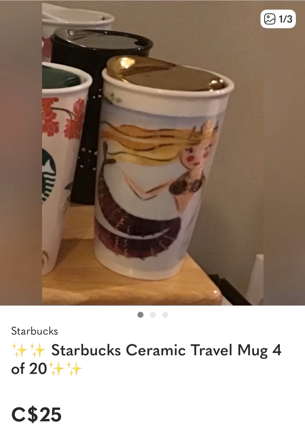 This limited edition, ceramic Starbucks reusable mug is great for your daily commute or for keeping beverages warm on the go. Please see my other ads for many more options. 😊