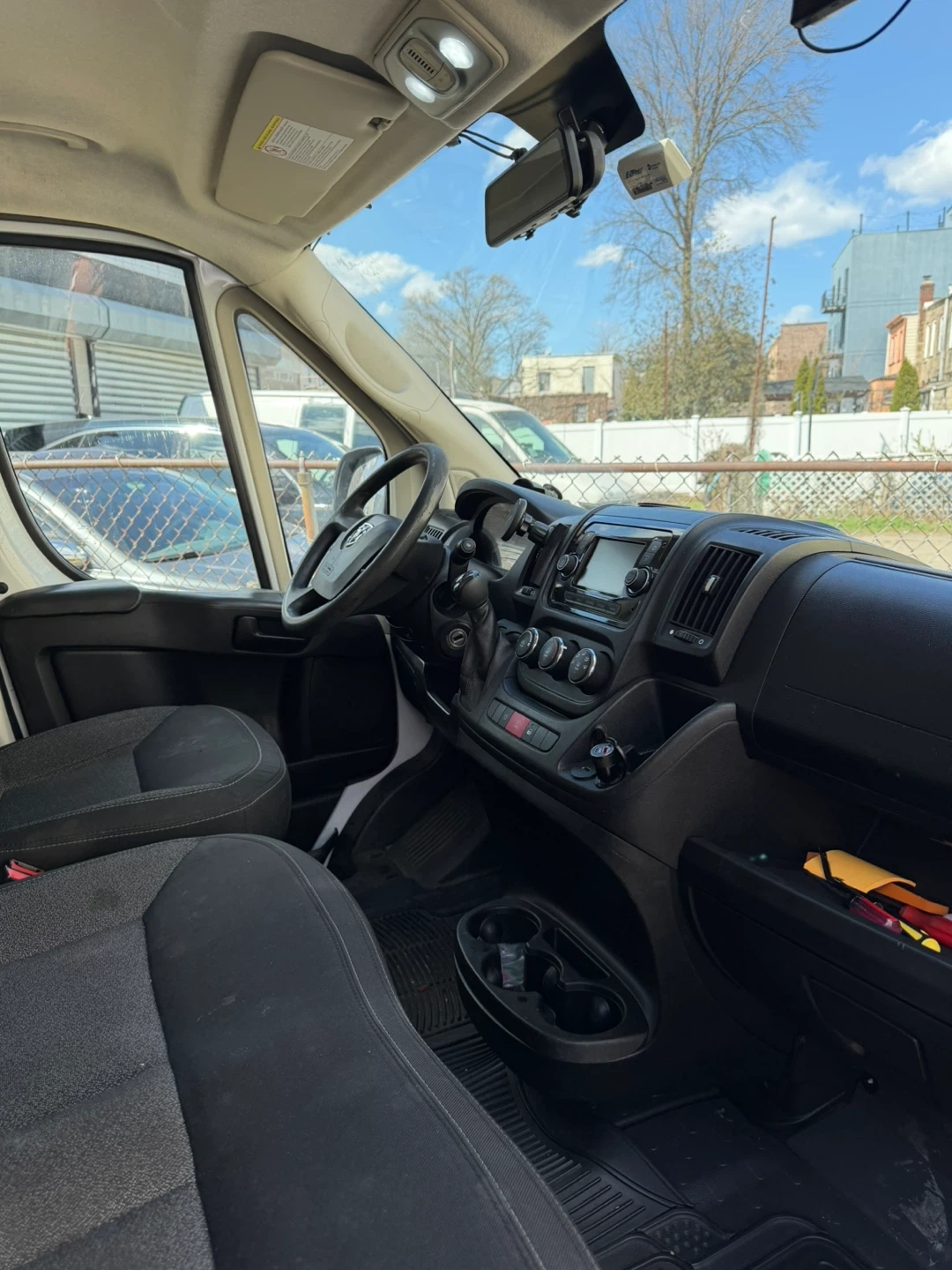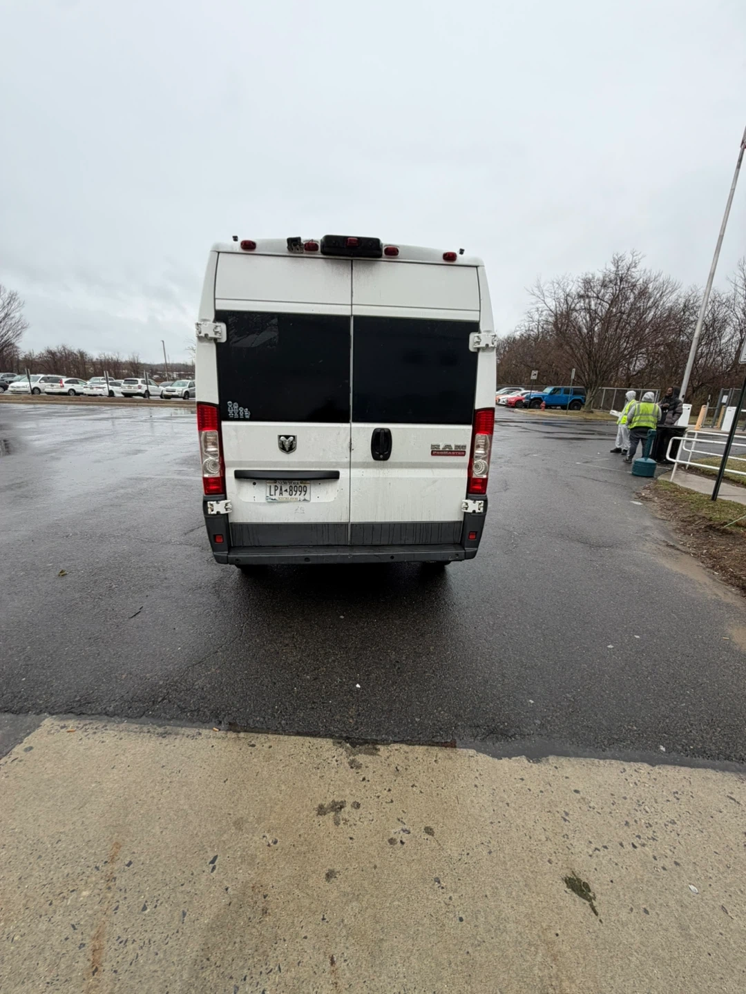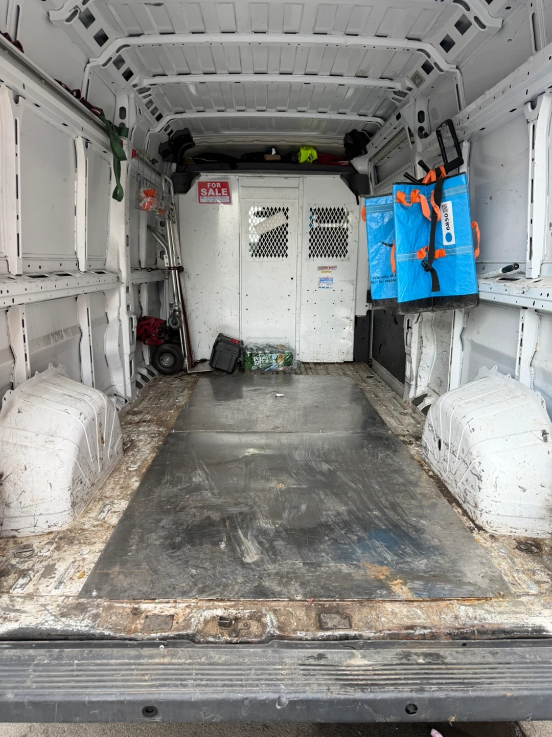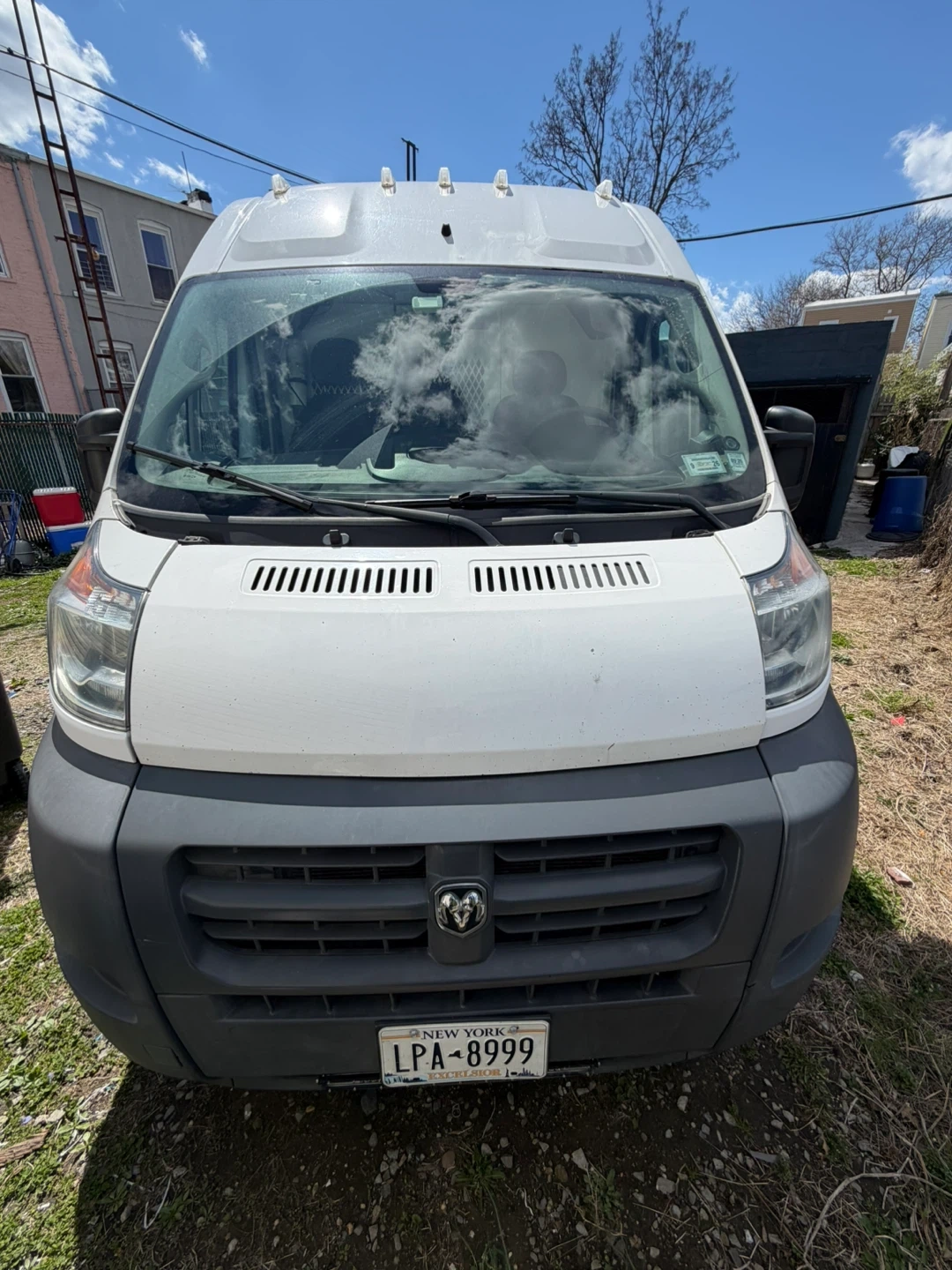 This is a white Ram ProMaster cargo van. It has a sliding side door and rear barn doors. The exterior shows some signs of wear. The vehicle has no problems; it is in perfect condition and has four new tires. El vehículo no tiene ningún problema está en perfecto estado y tiene cuatro gomas nuevas number 9179417504