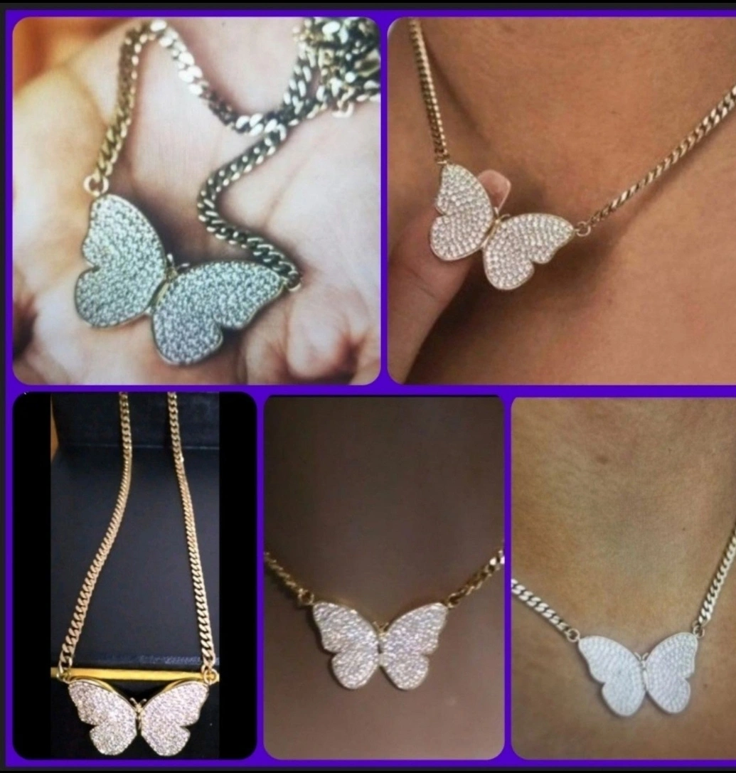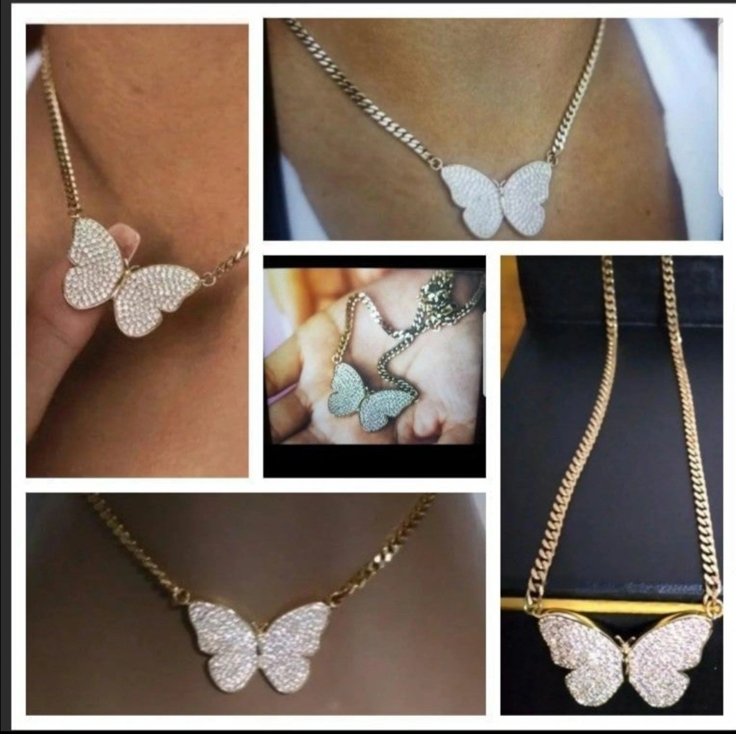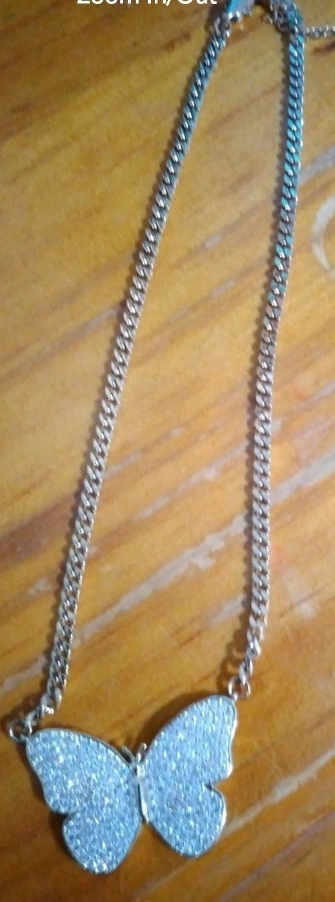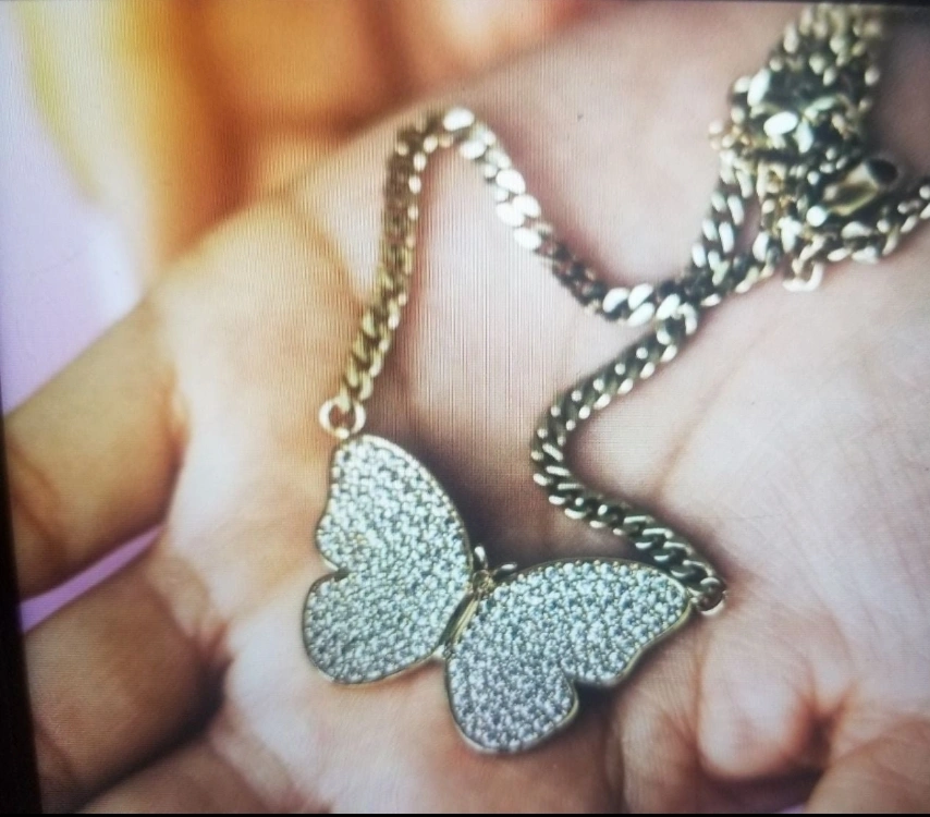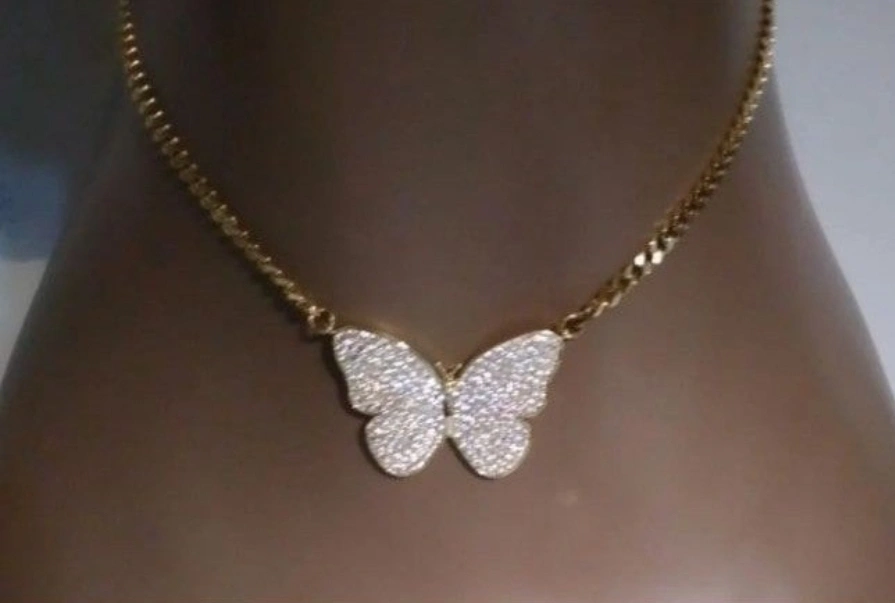 Selling a beautiful butterfly pendant necklace! It has a gold chain and the butterfly is covered in sparkling stones. It's in great condition and would make a lovely addition to any jewelry collection