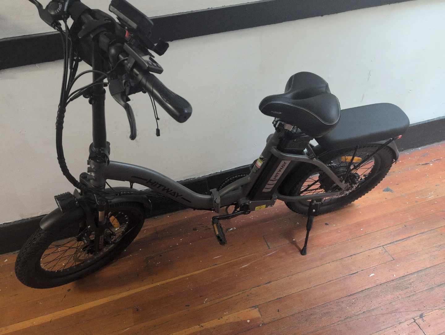 This is a Hitway folding electric bike, perfect for commuting or recreational riding. It's a versatile bike that can be easily stored or transported.