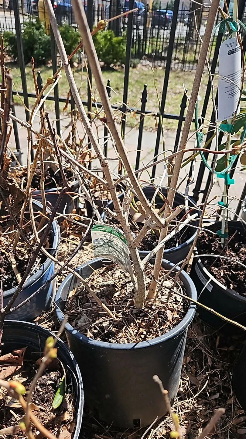 This is a European Dogwood plant in a pot. It's currently bare-root with buds starting to show. Perfect for transplanting into your garden.