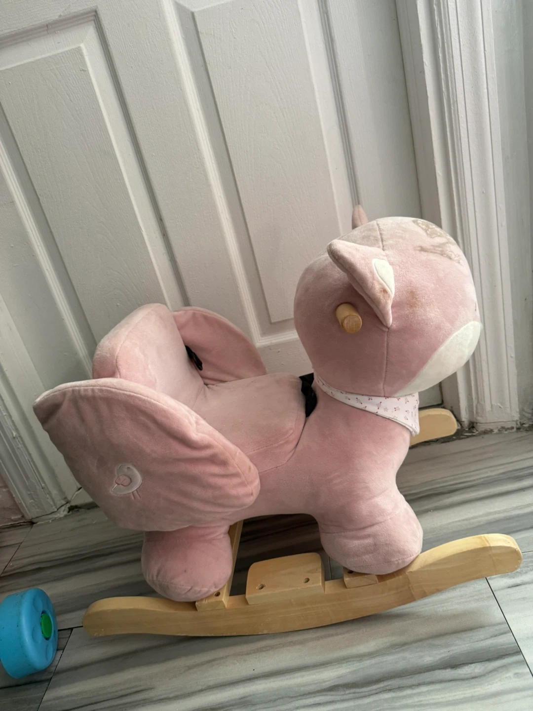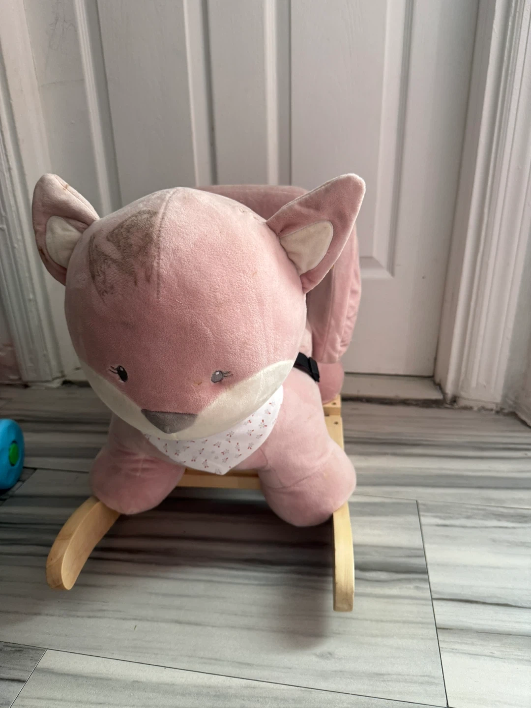 This plush fox rocker is soft and cuddly. It's mounted on a wooden base for gentle rocking fun. Great for little ones to enjoy!