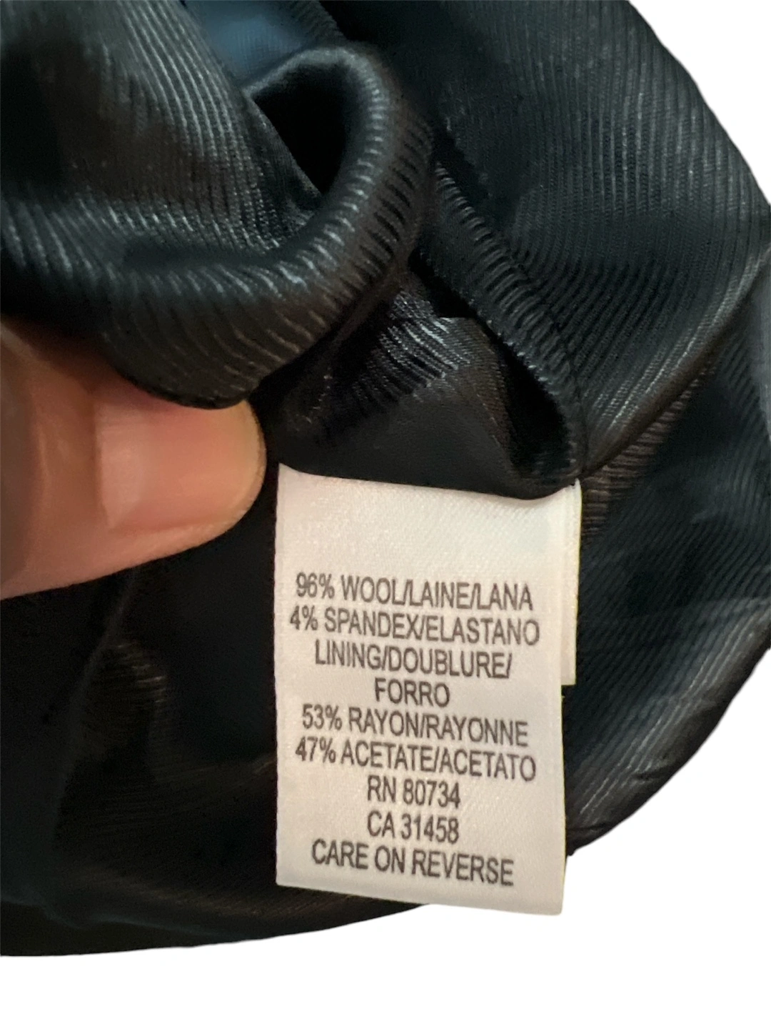 Black blazer, single button closure. Classic style with a tailored fit. Wool blazer.