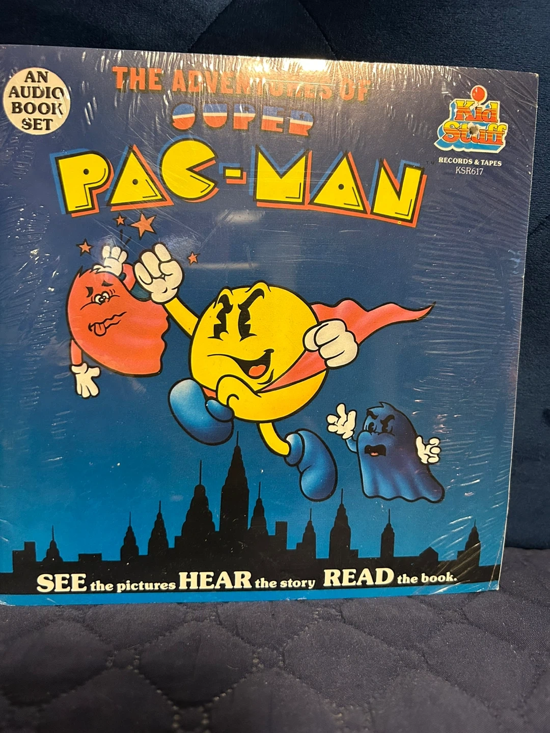 This is an audio book set for The Adventures of Super Pac-Man. It includes a record and tape. SEE the pictures, HEAR the story, READ the book!
